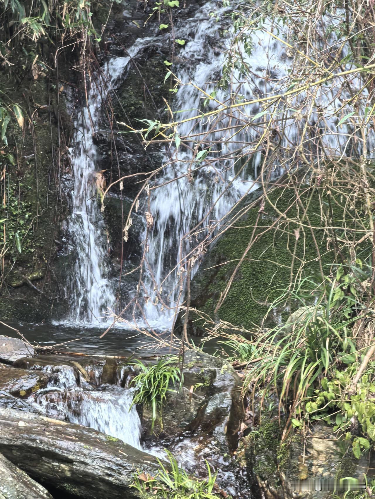 沿山而上,坡不算太陡,能见到瀑布。