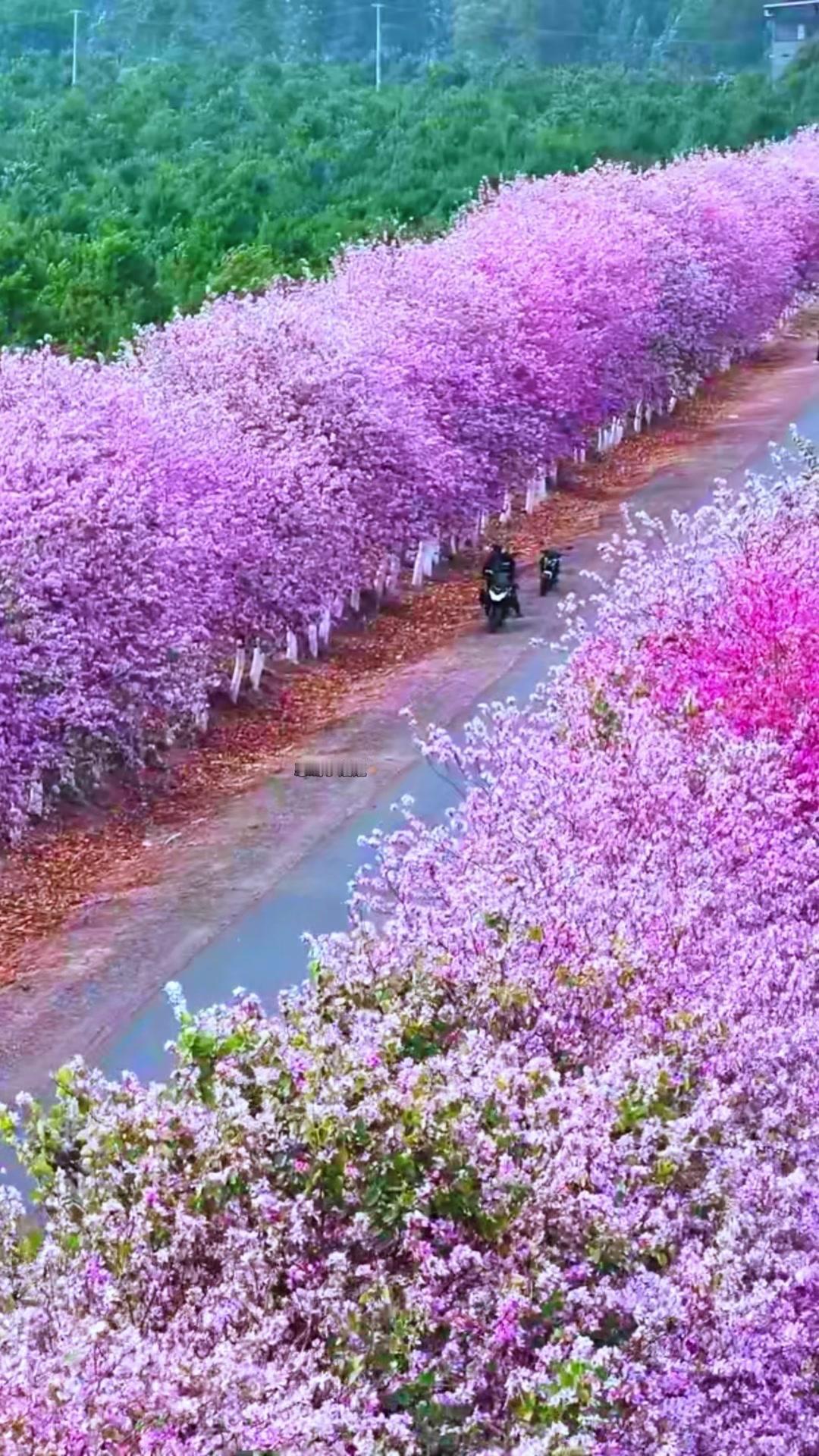 春天来了,来宾的紫荆花道也迎来了最美花期。粉紫色的花瀑沿着道路蔓延,风一吹,花瓣簌簌飘落,像一场浪漫的花瓣雨。漫步其中,仿佛闯入了童话世界,随手一拍都是大片既视感。