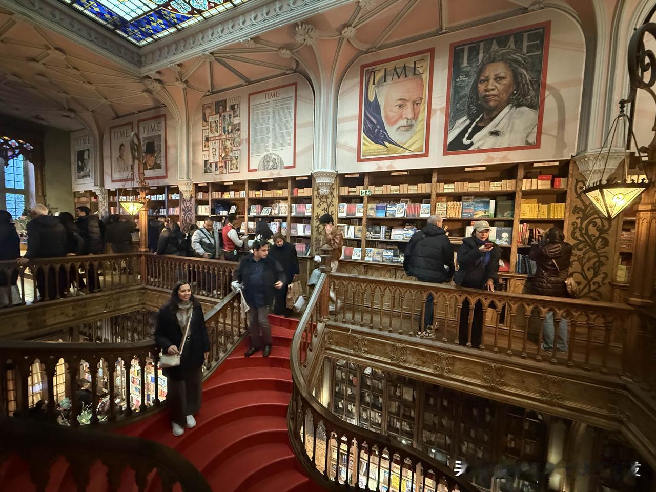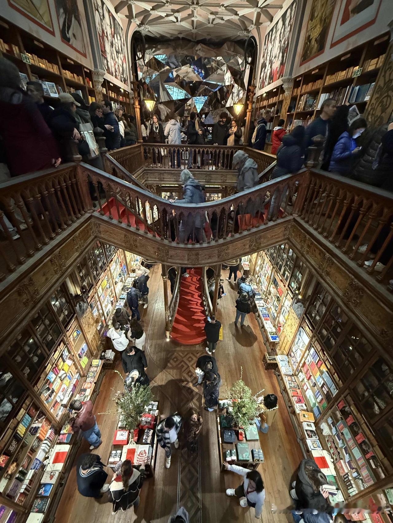 位于葡萄牙波尔图狮子广场附近的历史书店,2008年入选《卫报》全球十大最美书店,始建于1881年,1906年由建筑师埃斯特维斯改造为新哥特式风格,红色螺旋木质楼梯、彩绘玻璃穹顶和青铜雕花为标志性设计,玻璃天窗提供360度自然采光,其红色楼梯与奇幻氛围据传启发《哈利·波特》场景创作,但作者J.K.罗琳未证实到访。
