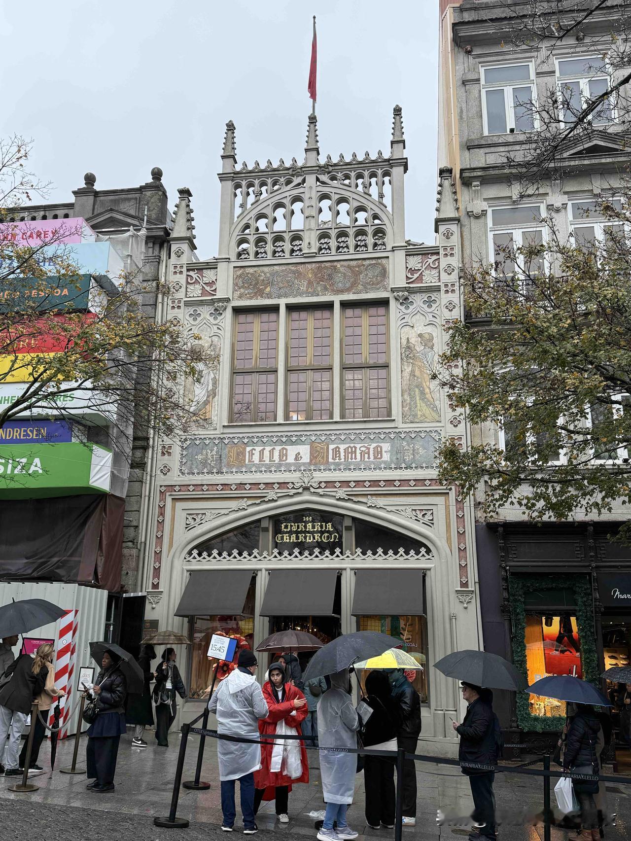 莱罗书店 雨中排队预约入场,人气旺旺~ 位于葡萄牙波尔图狮子广场附近的历史书店,