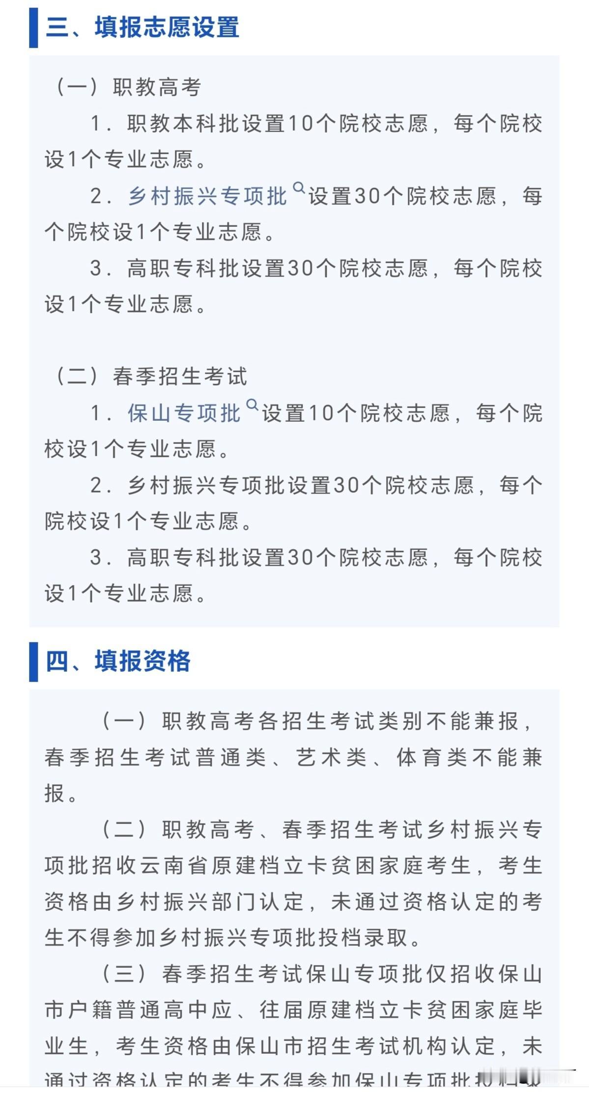 乡村振兴专项、高职专科批:各30个院校志愿 (均为专科层次)