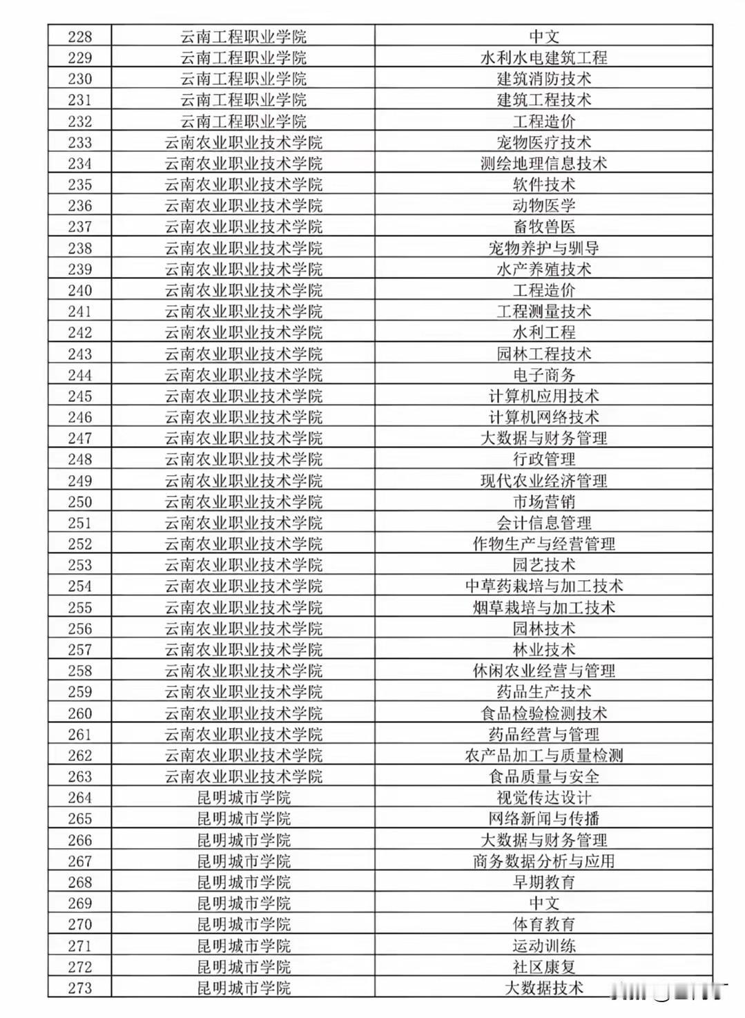 本科(职教高考):云南农业大学、西南林业大学、昆明学院