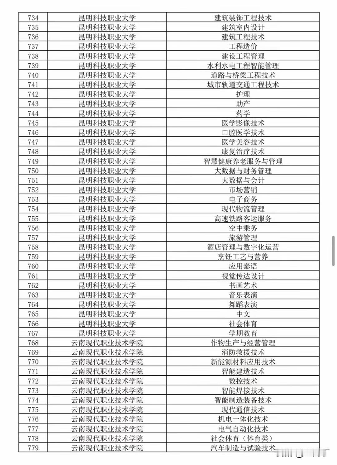 专科(春招+职教):云南机电职院、云南能源职院、昆明工业职院、云南水利水电职院、云南工贸职院等。