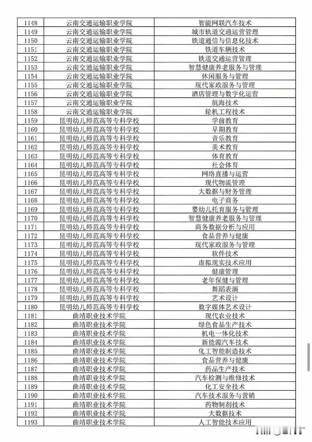 专科(春招+职教):昆明冶金高专、云南交通职院、云南机电职院、云南财经职院、云南国防工业职院、云南能源职院、云南科技信息职院等。