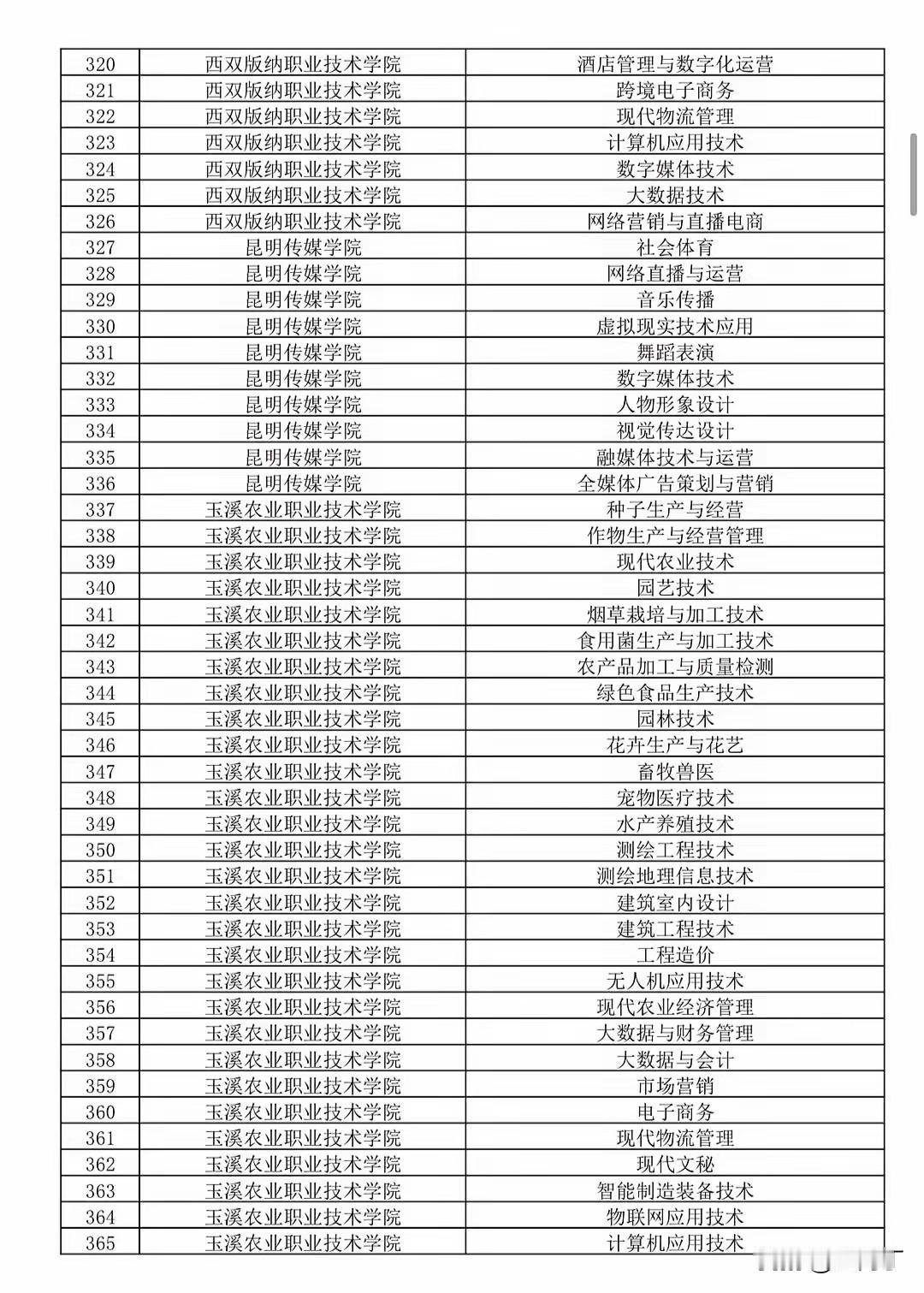 专科(春招+职教):云南农业职院、云南林业职院、大理农林职院、玉溪农业职院