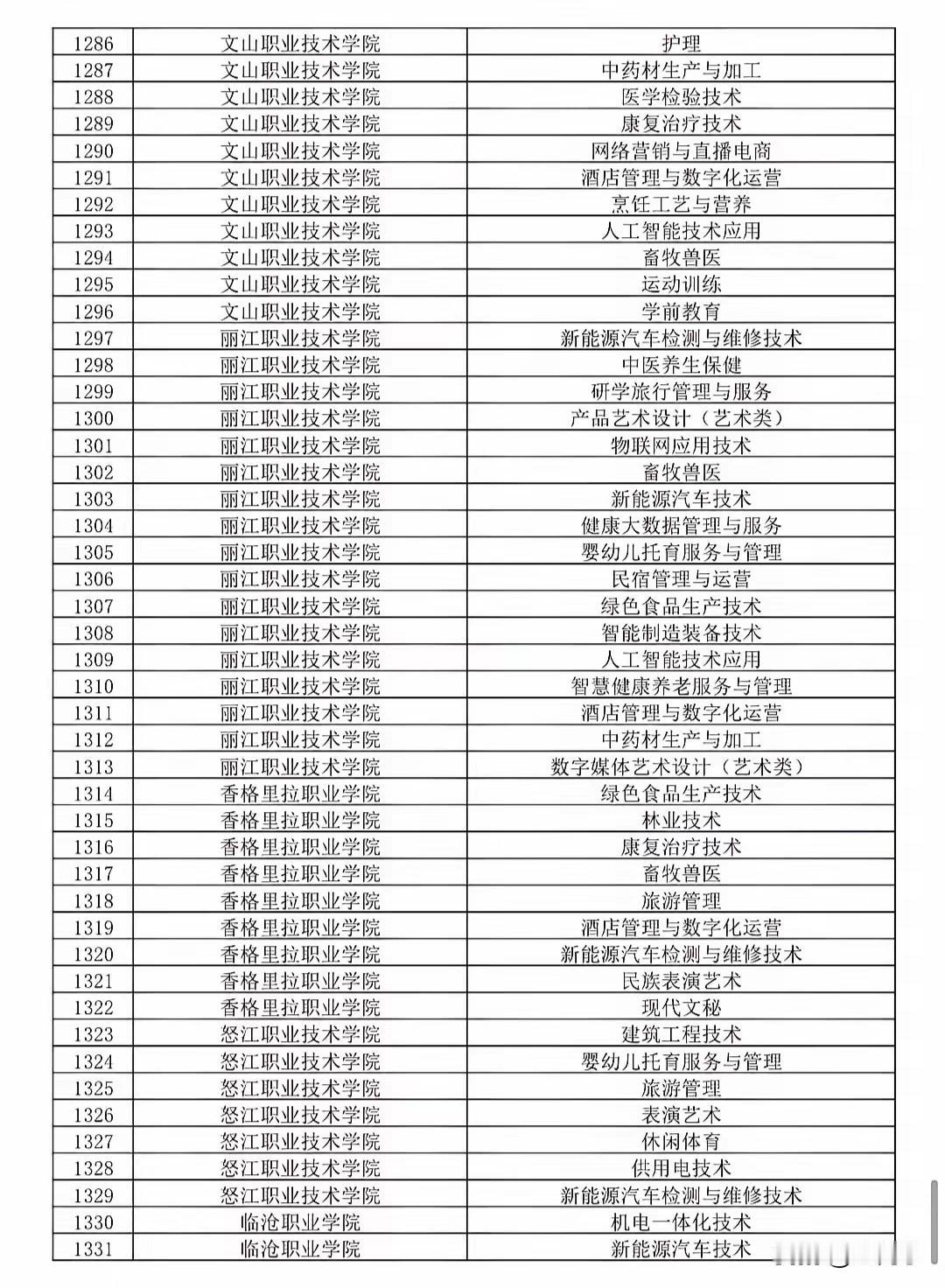 3. 最终招生计划、专业、代码以云南省招考院正式发布为准。