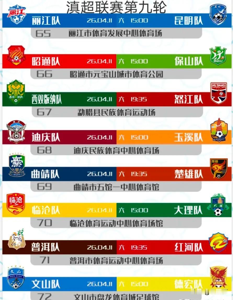 2026赛季滇超联赛赛程过半,积分榜争夺更加激烈,每一场比赛的结果都牵动着排名。4月11日(周六)19:35,联赛第9轮迎来备受球迷关注的焦点对决——楚雄队奔赴客场,对阵主场作战的曲靖队。值得注意的是,滇超多数比赛安排在下午3点开球,而本场关键卡位战特意放在了晚间黄金时段,足见其分量之重。赛事信息: