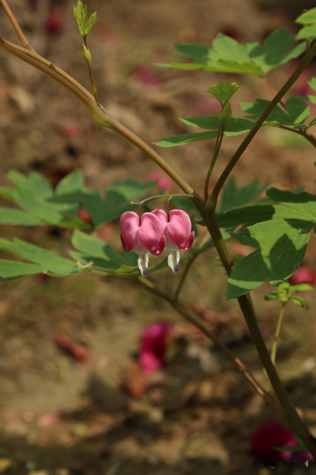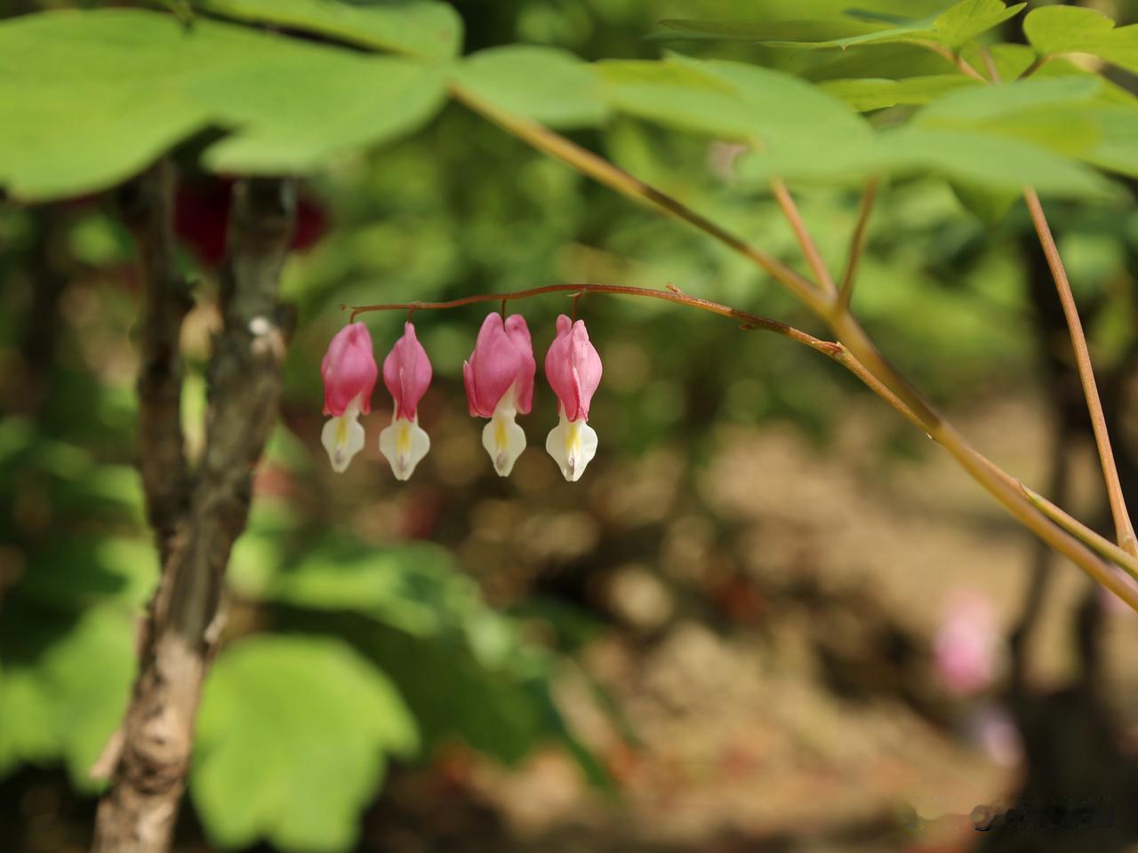 荷包牡丹,与我们的国花牡丹,完全不是一个品种。荷包牡丹在南宋的时候,被叫做鱼儿牡丹,因为花型像垂吊的双鱼,而叶片像牡丹。到了清代被叫做荷包牡丹,也是因为花型看着像悬垂的荷包。不管鱼儿还是荷包,跟真正的牡丹没有半毛钱关系。西方人为这花起的名字,叫“滴血的心”,bleeding heart,意境可是差远了,还是咱们的荷包牡丹好听。