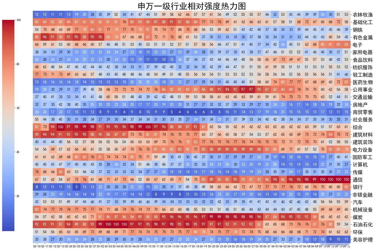 电子(83)、银行(82)、医药生物(82)一起,属于第二梯队。
