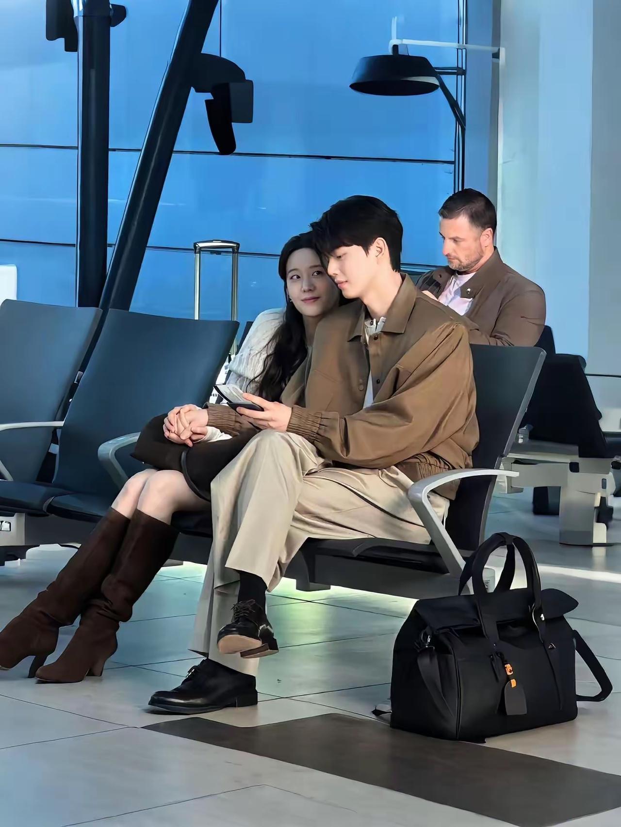 候车厅遇见一对男女,应该是热恋中的恋人,满眼都是你,满天星辰不如你