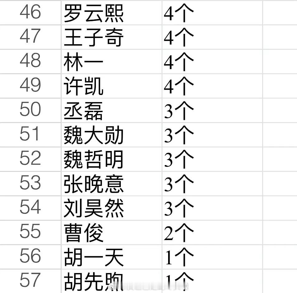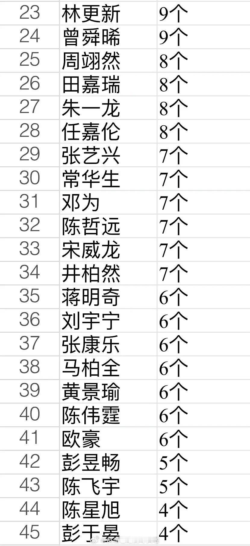 内娱男明星代言统计王一博、丁禹兮、肖战、檀健次、吴磊张凌赫、侯明昊、于适、范丞丞、易烊千玺张若昀、王鹤棣、杨洋、王安宇、王俊凯