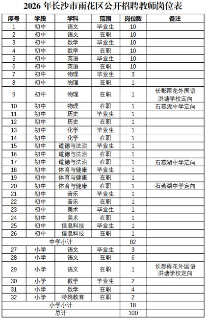 长沙雨花区启动2026年教师公开招聘 100个全额事业编岗位正式发布