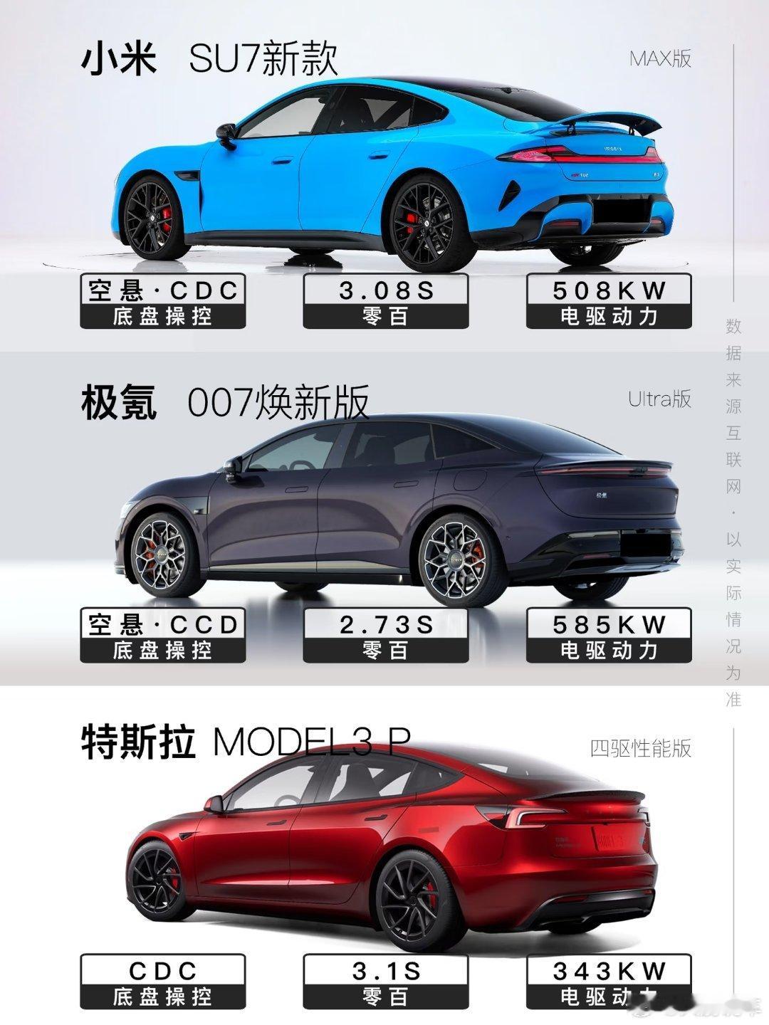 极氪007焕新版来了,不少看车的朋友纠结:特斯拉Model 3的操控,又想要SU7那种自带回头率的感觉,花2个小时盘了下三台车,选的都是各自的顶配,2秒俱乐部到底哪款值得选?看这篇就够了1️⃣充电续航Model 3强在能耗管理,成熟的400V平台,日常通勤电耗低,车型最长续航830kmSU7 Max终于拿出了897V的高压平台,12分钟就能10%充到80%,车型最长续航为902km极氪007焕新版标配900V高压平台,车型最长续航做到了905km,10%-80%快充时间约为10分钟。900V的高压架构,让你充电不用等太久,也不用担心过两年这车在核心技术上落伍2️⃣加速和操控Model 3高性能版的3.1s零百加速,配合精准转向,日常开着很有乐趣SU7 Max的3.08s也是随踩随有,爆发力强极氪007焕新版Ultra搭载585kW双电机,零百直接干到2.73s,难得的是,加速不是那种让人头晕的紧张感,配合极氪的底盘调教,加速底盘很稳,稳稳按在地上,信心很足3️⃣底盘质感Model 3P的CDC悬架路感清晰,保留了纯粹的运动感SU7 MAX配有空悬和CDC,平衡了家用的舒服和激烈驾驶的欲望极氪007焕新版 Ultra是空悬高低可调与CCD软硬可调的组合,过烂路或者减速带时的高级感不错此外,它带的V2L外放电功能,周末去野外露营带个电烤炉、投影仪都不在话下;同时它还有个少见的60kW的V2V车对车充,出去玩还能给朋友的车当个“大型充电宝”救急4️⃣外观和眼缘Model 3是极简冷淡风小米SU7的跑车姿态确实没得说极氪007焕新版坚持了原创设计:标志性的蚌式前盖和整体线条,有属于自己的高级感,开出去不撞脸💡喜欢简洁设计和高效能管理,选特斯拉没错;追求跑车姿态、颜值和生态体验,小米SU7很能打看重底层三电技术、追求硬件配置丰富度,极氪007焕新版参数扎实、坚持原创的车型确实值得推荐最后,手握30个W,你会怎么选?小米SU7 model3 特斯拉model3 极氪 小米汽车 特斯拉 新能源汽车 值得入手的车 宝藏新车 新车时间到 RCC飞驰计划 玩车无格式