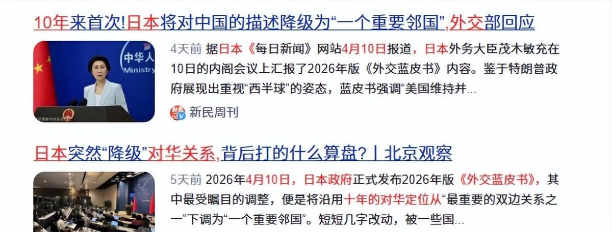 4月10日那天,日本政府高调发布了新版《外交蓝皮书》,把维持了十年的对华定位给降级了。