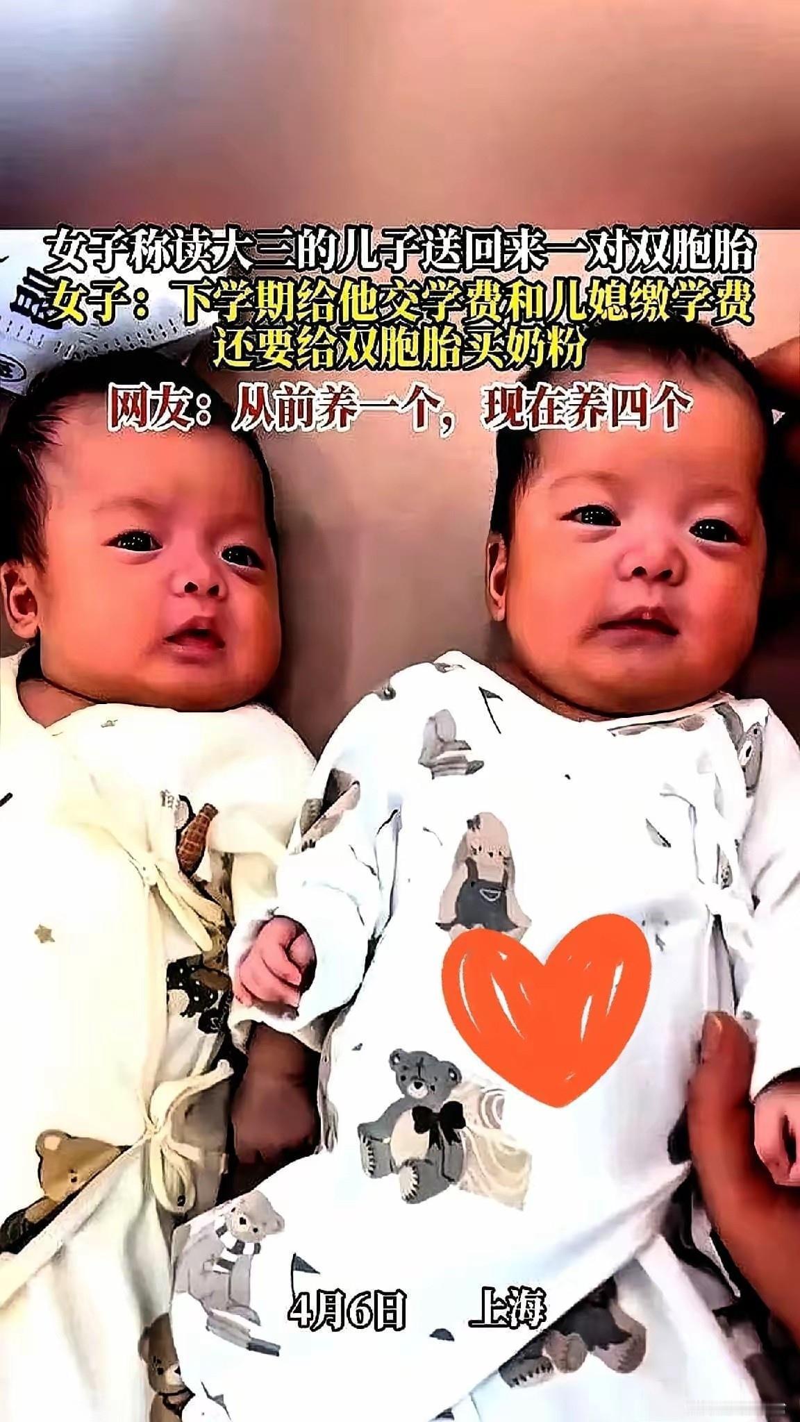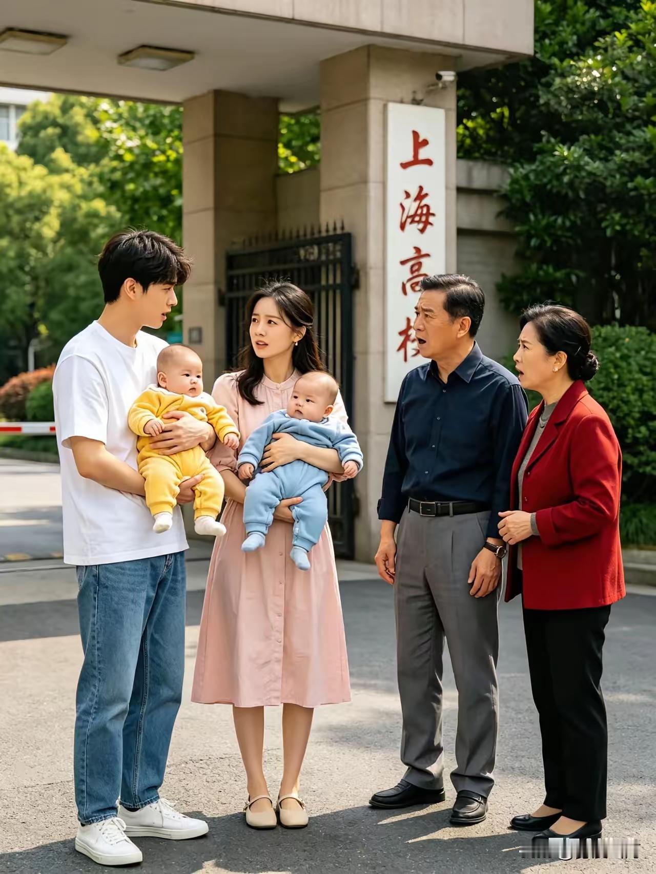 读大三的儿子某天直接将老婆和一对双胞胎小精灵帶回家,硬生生给父母送了个三连炸惊喜,把父母惊得几分钟没能回过神…
