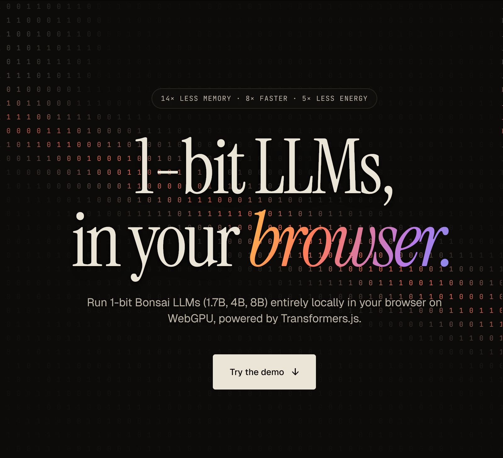 huggingface.co/spaces/webml-community/bonsai-webgpu在浏览器中使用 WebGPU 完全本地运行 1-bit Bonsai LLM(1.7B、4B、8B)。当然智商不高的样子