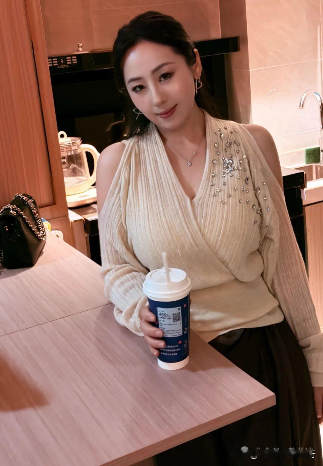 暖棕调厨房漫着温柔,针织衫的钻芒与纸杯的蓝,把片刻松弛酿成了闪光的诗。 珍珠耳坠坠着细碎的光,露肩毛衣漾着慵懒,握着咖啡的手,正攥住生活的甜。 米白针织裹住午后的温,钻饰与银链私语,咖啡的热气里,全是自在的模样。