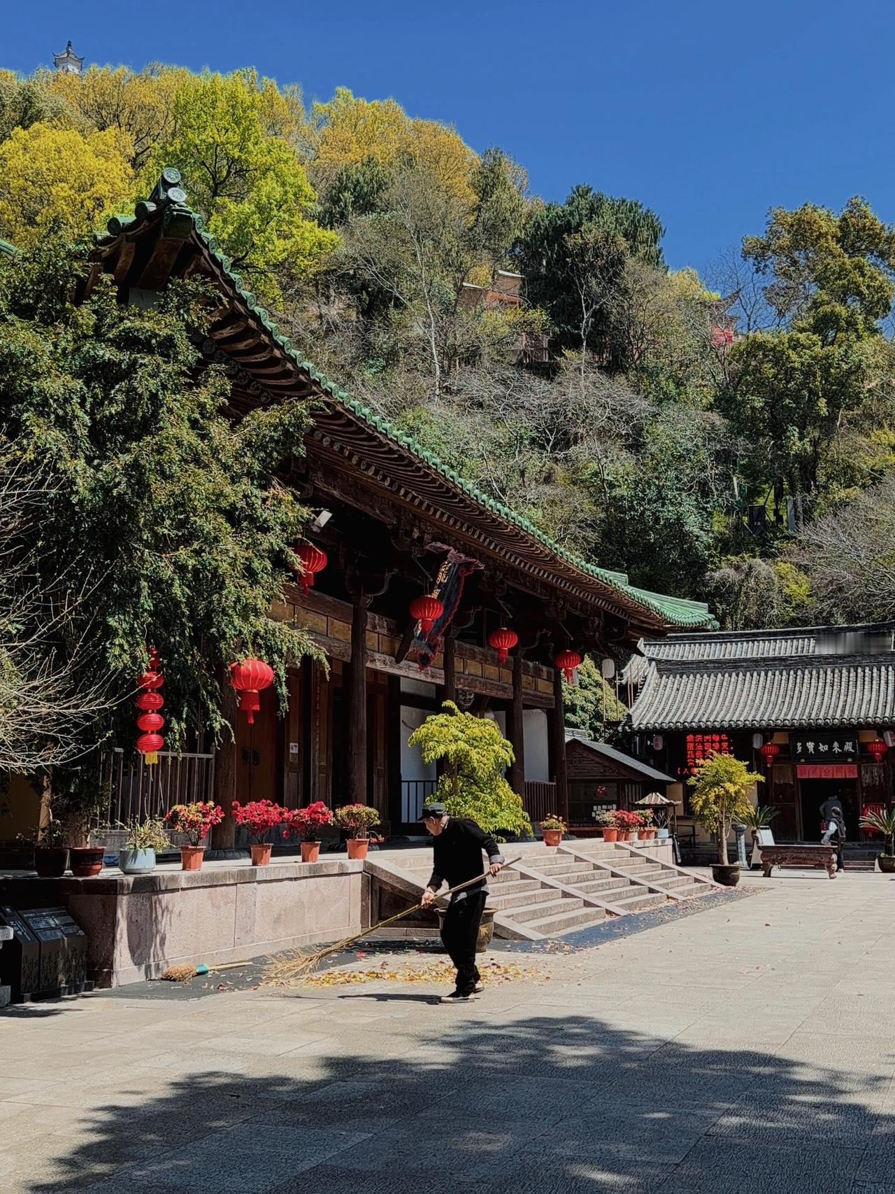 春日古镇,晴日正好。 新绿爬满枝头,青瓦接住阳光,远山在风里安静。 在这里,连风