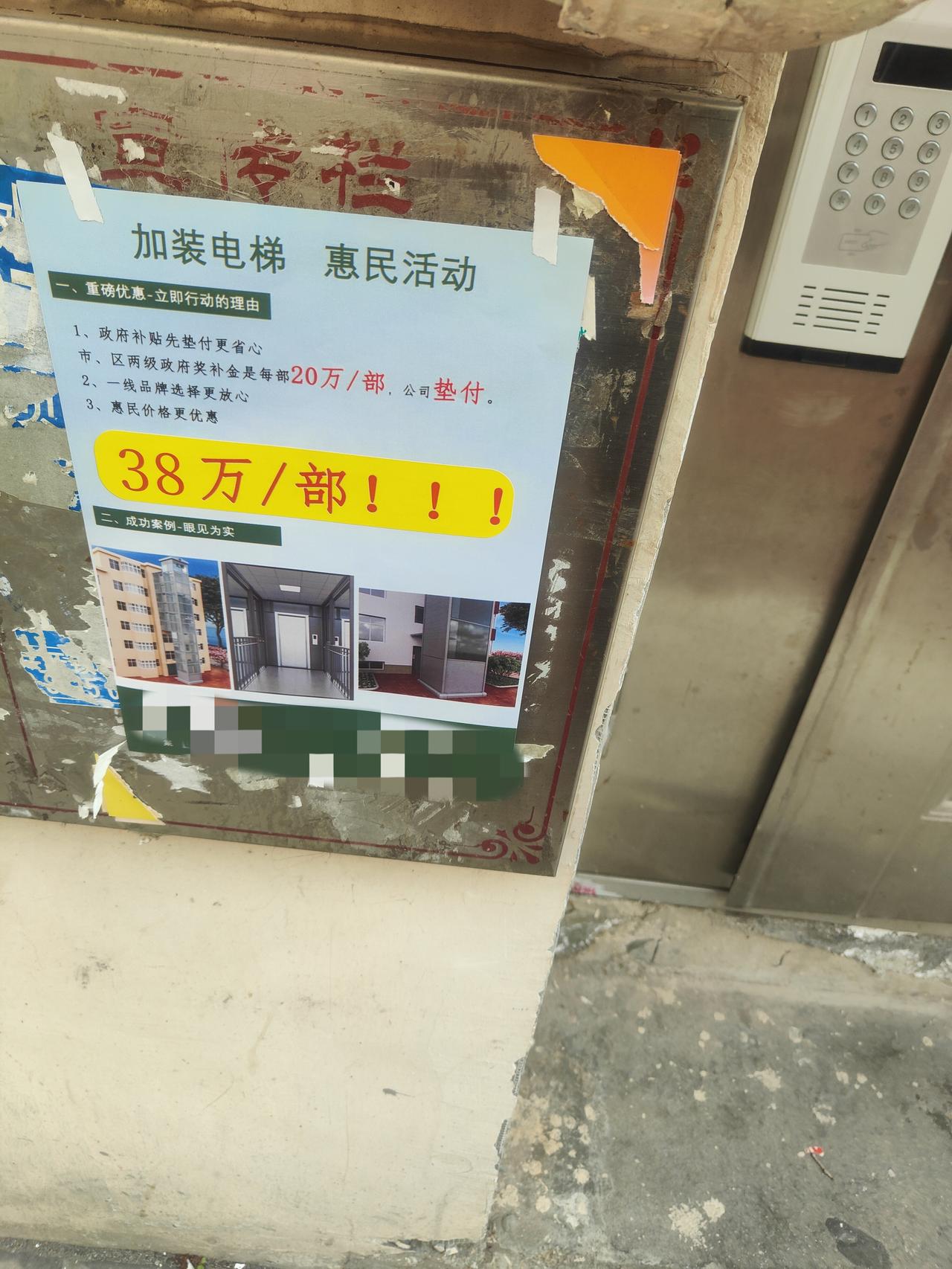 现在加梯公司竞争十分激烈,在小区发放小广告,在大爷大妈中游说,在单元门口张贴小广