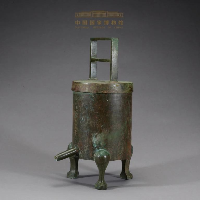 铜漏壶(图四),青铜质,汉代,通高10.5厘米,壶身直径9.8厘米,藏于河南博物院。