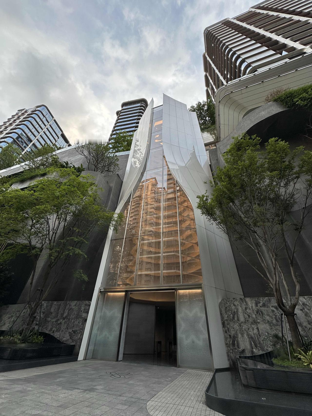 重庆顶豪小区的归家大堂! 垂直构造,高差近30米。 LG是平层, -1层是会所,