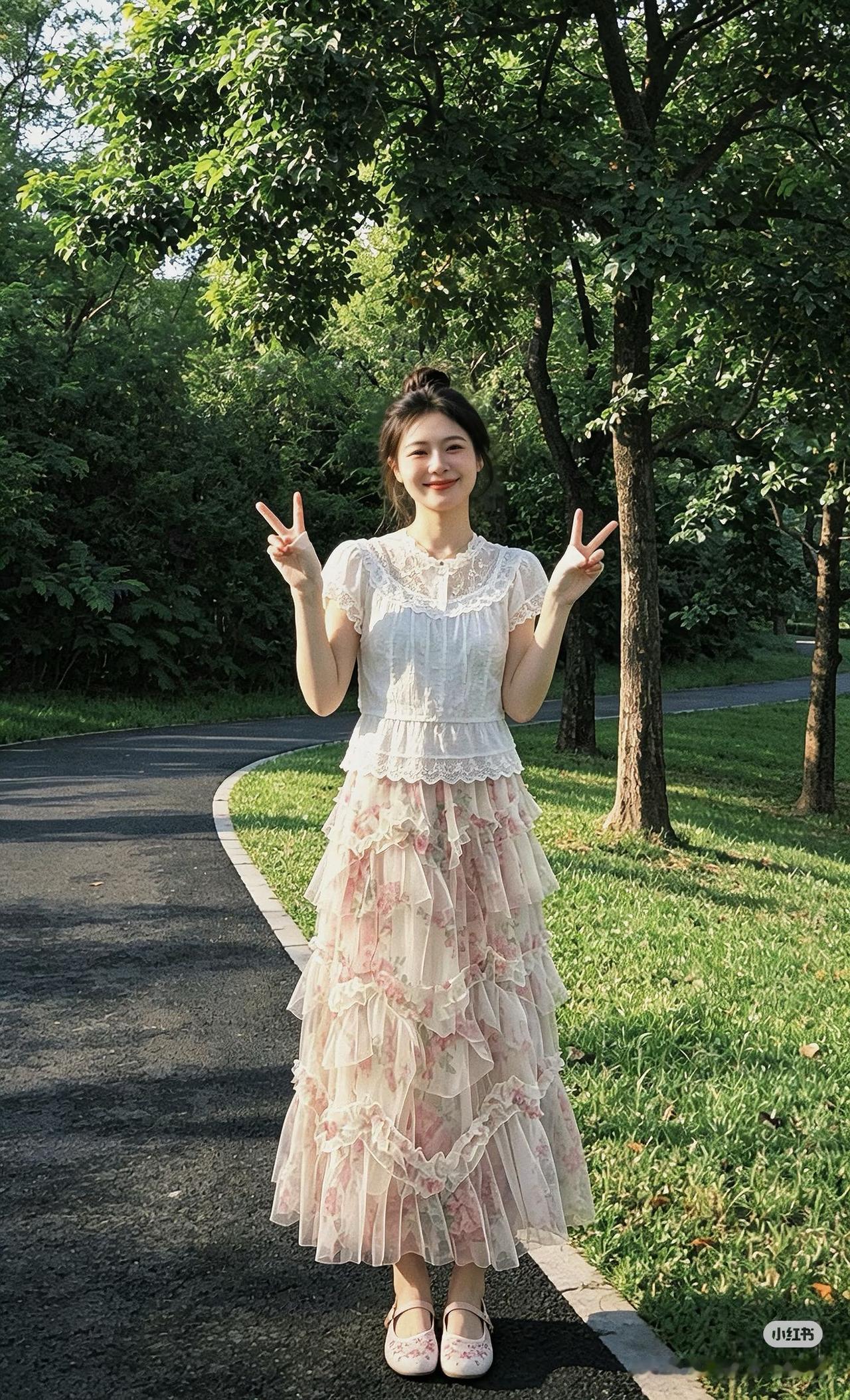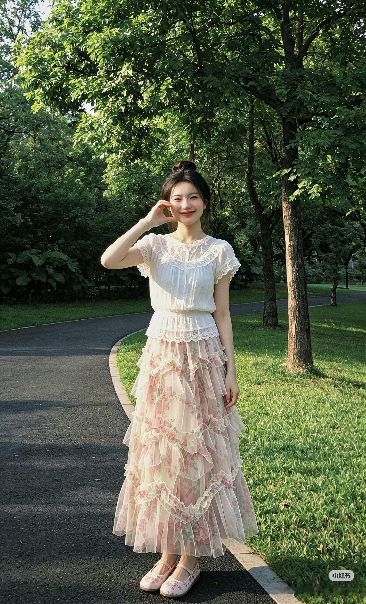 重点夸这条层层蛋糕半裙!粉粉嫩嫩的花卉印花,自带温柔滤镜,满屏都是春日少女感~ 多层网纱拼接设计,灵动又飘逸,走路时裙摆轻轻晃动,仙气值拉满!高腰版型巨显腿长,小个子姐妹也能轻松驾驭,搭配玛丽珍鞋,甜妹气质直接封神!