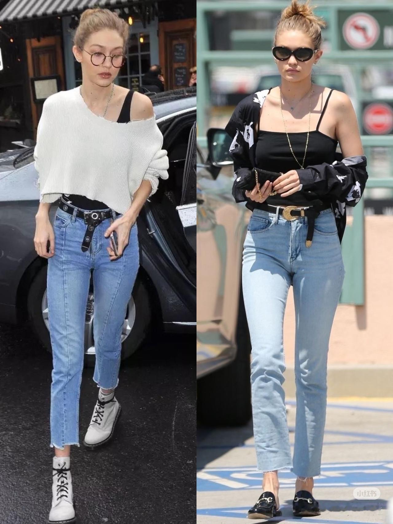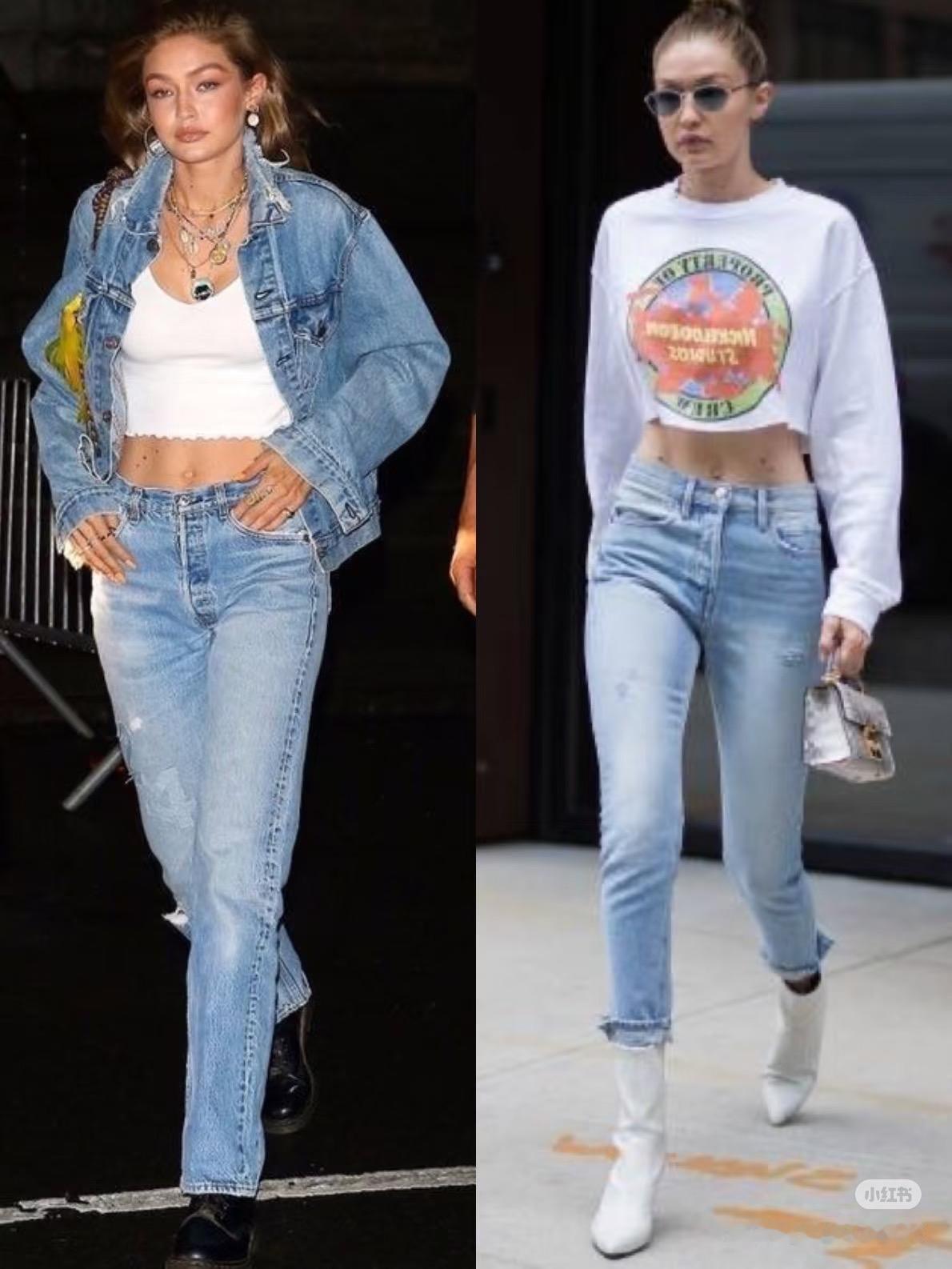 直筒牛仔裤×超模街拍感
