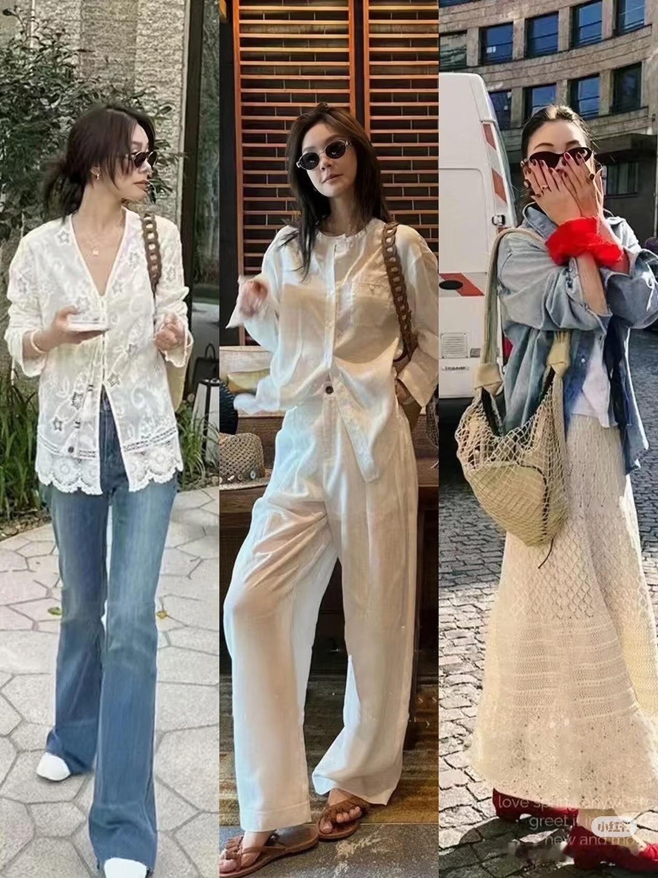 被刘雯这身机场穿搭狠狠种草!娃娃领针织衫+白衬衫,温柔又减龄,阔腿牛仔裤+乐