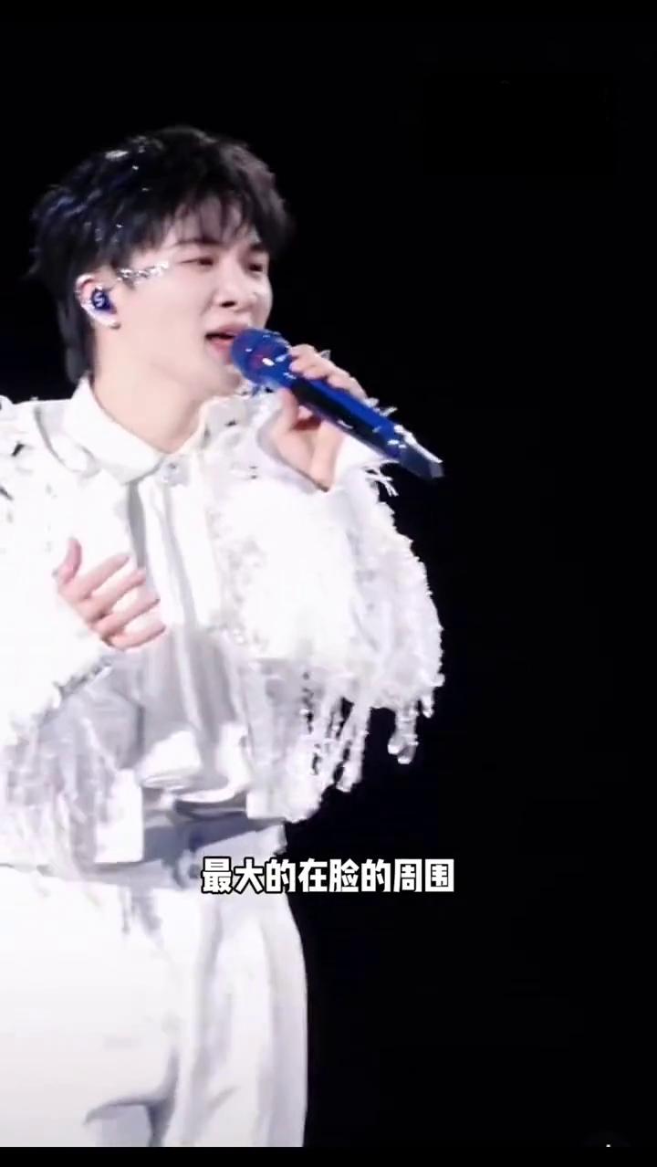 这件衣服的装饰主要集中在肩膀位置是最大的,而且和衣服整体的颜色是类似的,透明的,没有那么沉重,是很适合周深的量感。衣服设计的足够隆重,而且集中在腰部以上,最大的在脸的周围,是很成功的想法。