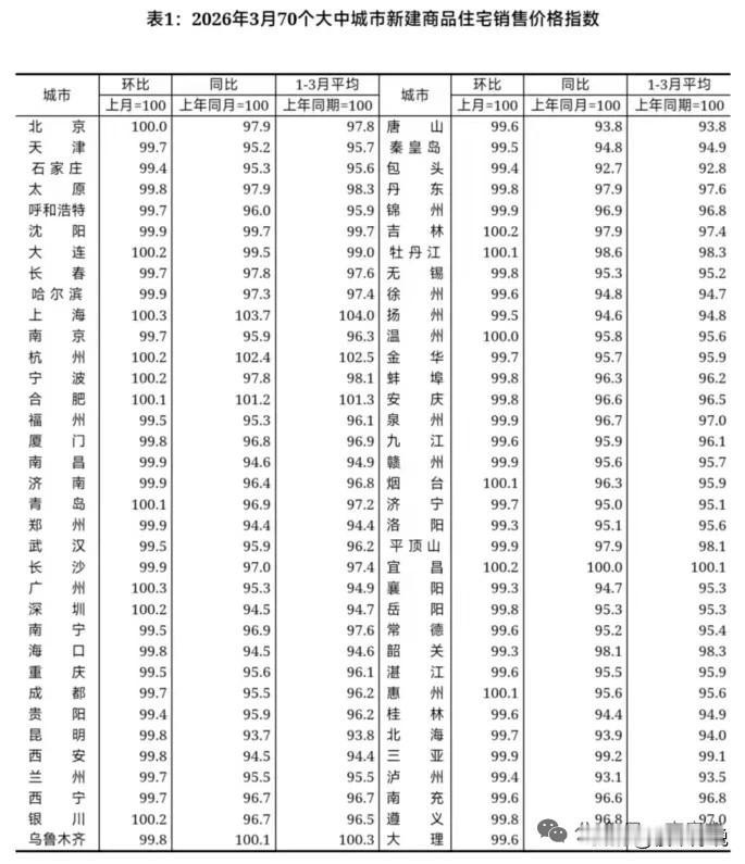 3月70大中城市房价指数,整体看就是,一线城市,新房二手均持平或上涨,二三线城市,新房二手房虽然还在跌,但跌幅均持平或收窄,整体的确是向好的!