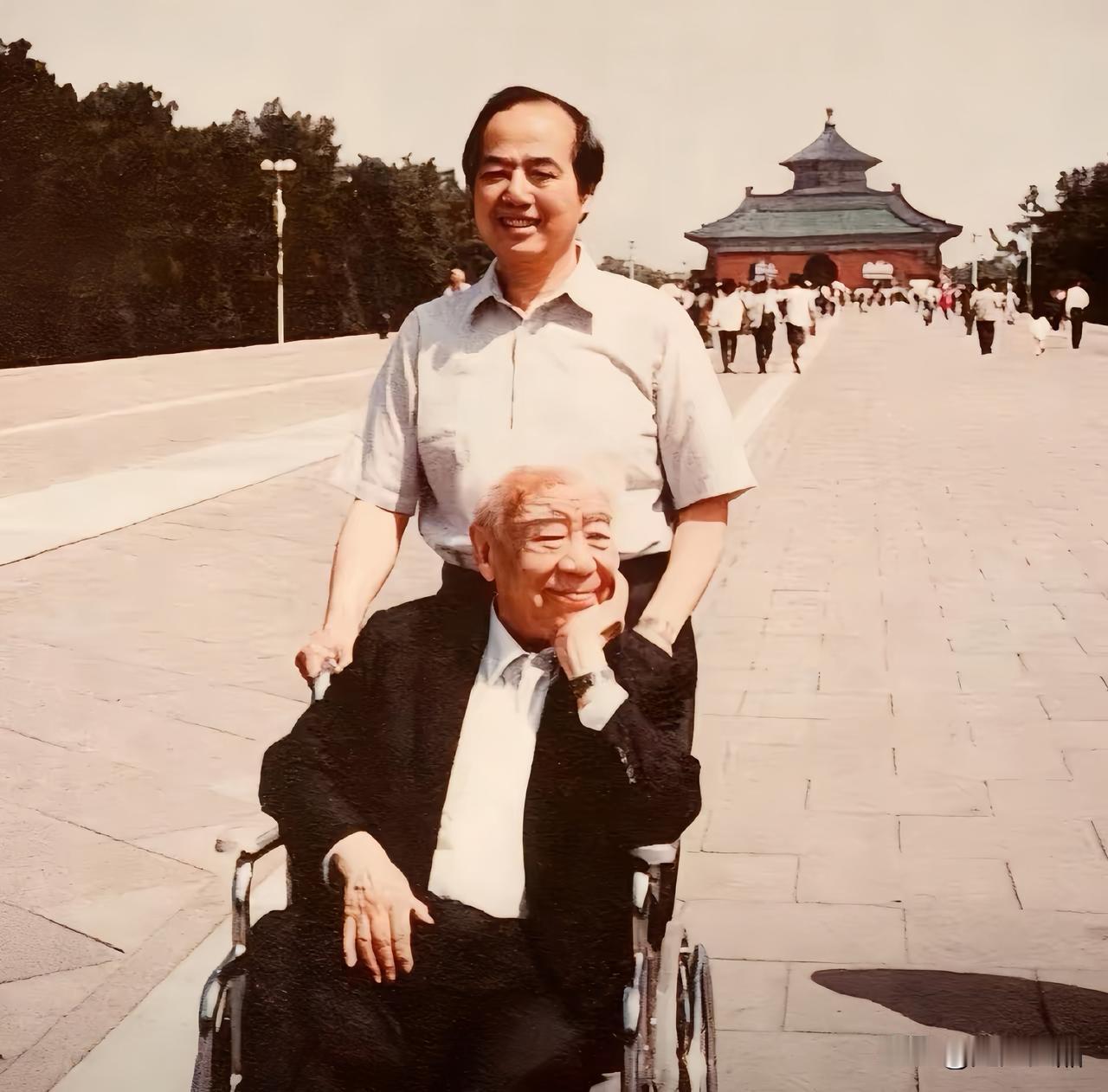 这是李政道与恩师吴大猷的一张合影照,拍摄于1992年的北京天坛公园,六十六岁的李政道推着轮椅,轮椅上坐着八十五岁的恩师,这是吴先生阔别大陆四十六载后的首次归来。