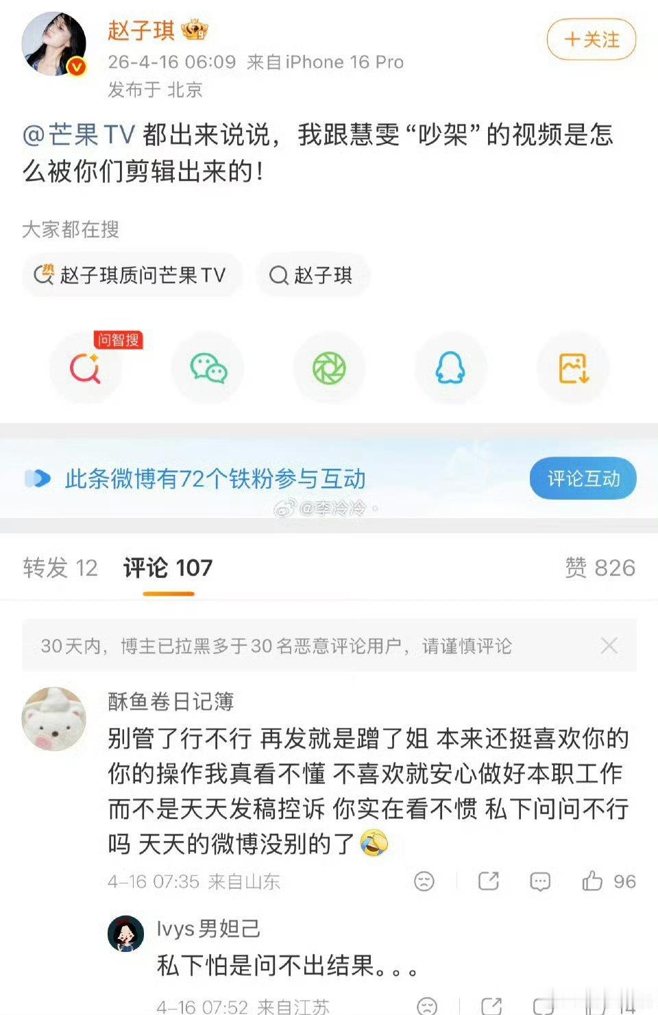 赵子琪为上浪姐下了血本为全身心投入浪姐舞台,赵子琪推掉了一部影视剧资源,并提前3个月开始高强度训练,每日死磕唱歌和舞蹈,甚至通过举哑铃负重练习提升体能。