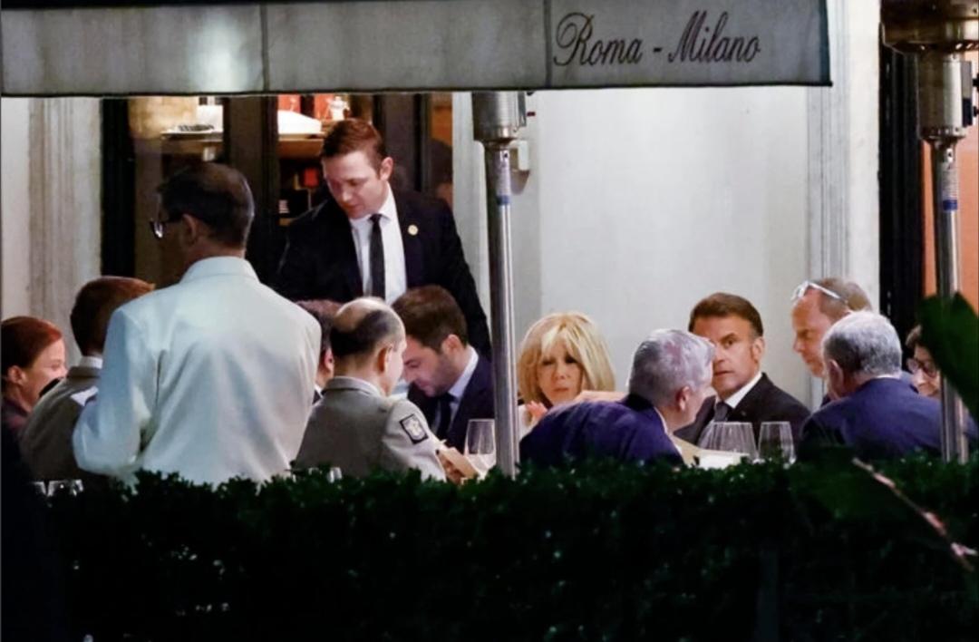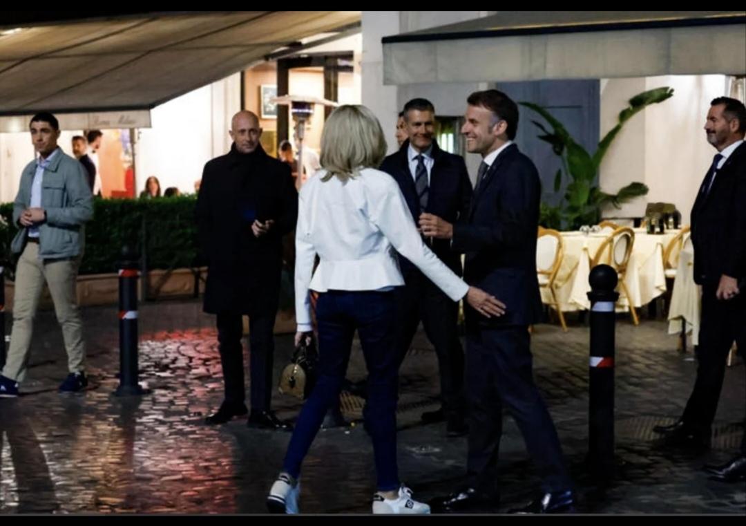 恩爱夫妻非马克龙夫妇莫属!4月9日,马克龙夫妇访问罗马结束后,前往意大利餐厅就餐