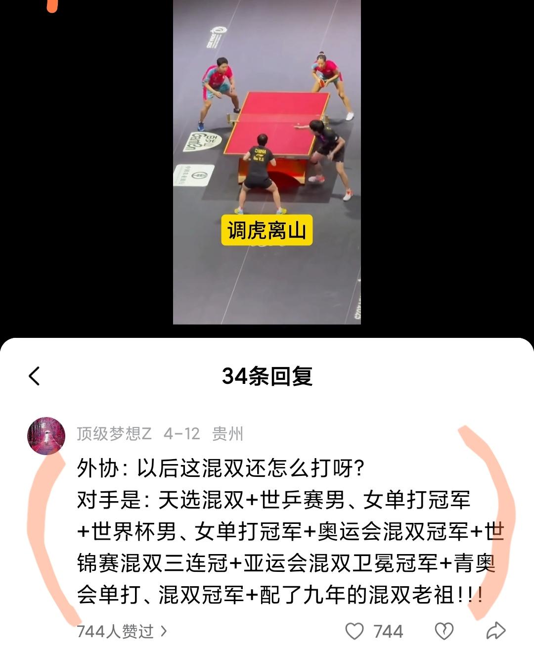 外协感慨,混双怎么打的赢,俩人天人合一了。
