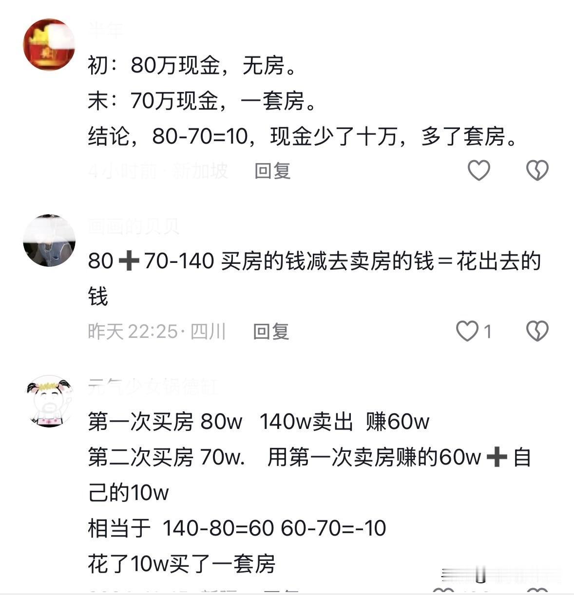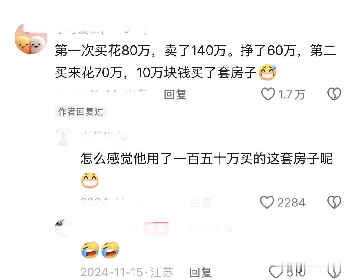 第一次买房花了80万 住了3年140万卖了 过了3年又花70万买回来了 这到底是