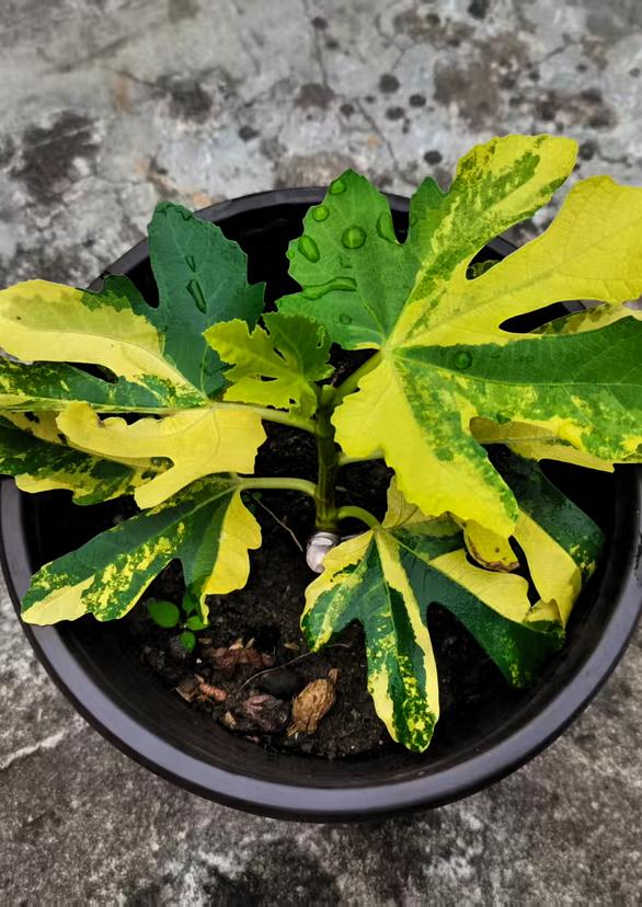 花叶老虎无花果赏叶又能吃果,有人说它是从美国引进,还有观点认为它是玛斯义陶芬变异产生。它叶片黄绿白相间,就像大自然画的绚丽画卷,在庭院、花园或者室内,都是亮眼的存在。这变异后的品种,说不定结合了两者优点,值得期待!