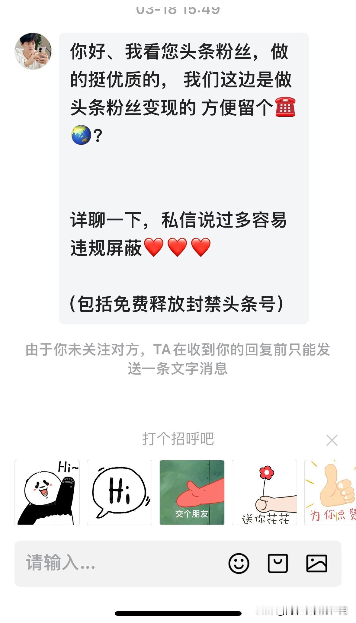 最近一段时间,经常有人私信我,说他们是做头条粉丝变现的,问我想不想合作?还要加我微信。
