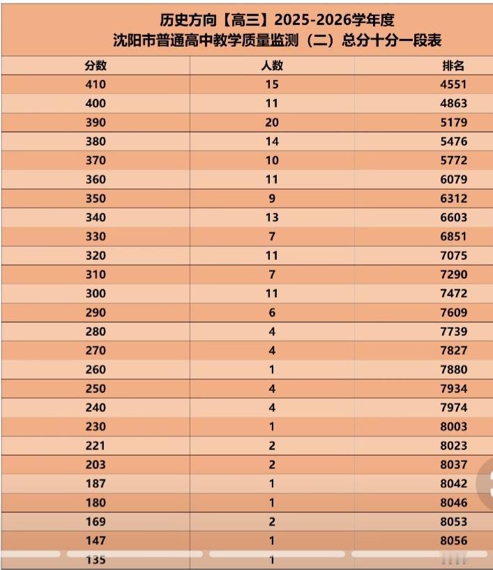 沈阳高三二模历史方向市排一分一段