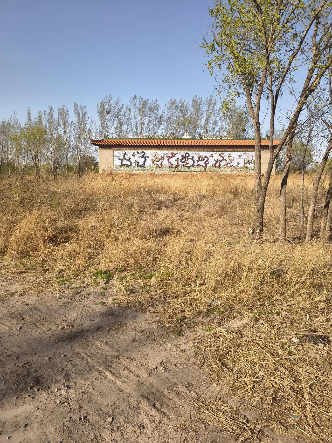 门口气派的大门,有些斑驳。大门上端三个大字中间那块刻字的石块损了大半,沿着大门正中可以看到一堵墙,有点像静海大邱庄庄头立的那堵“九龙壁”的样子。尽管这里进去的路垫了方砖,可骑进去一段,仍感到有些肃杀氛围。
