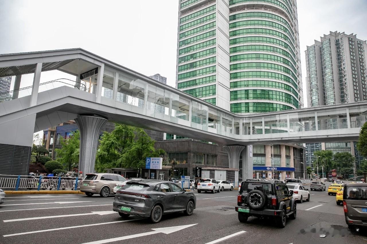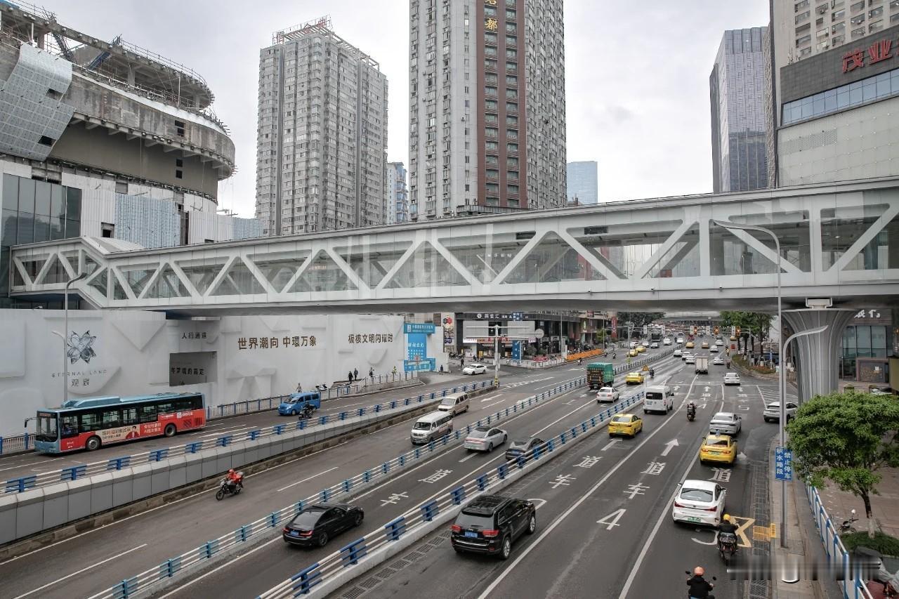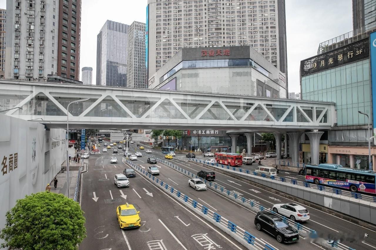 两江新区观音桥商圈规划的空中连廊已基本完成首开段建设,目前已开启二阶段施工。连廊