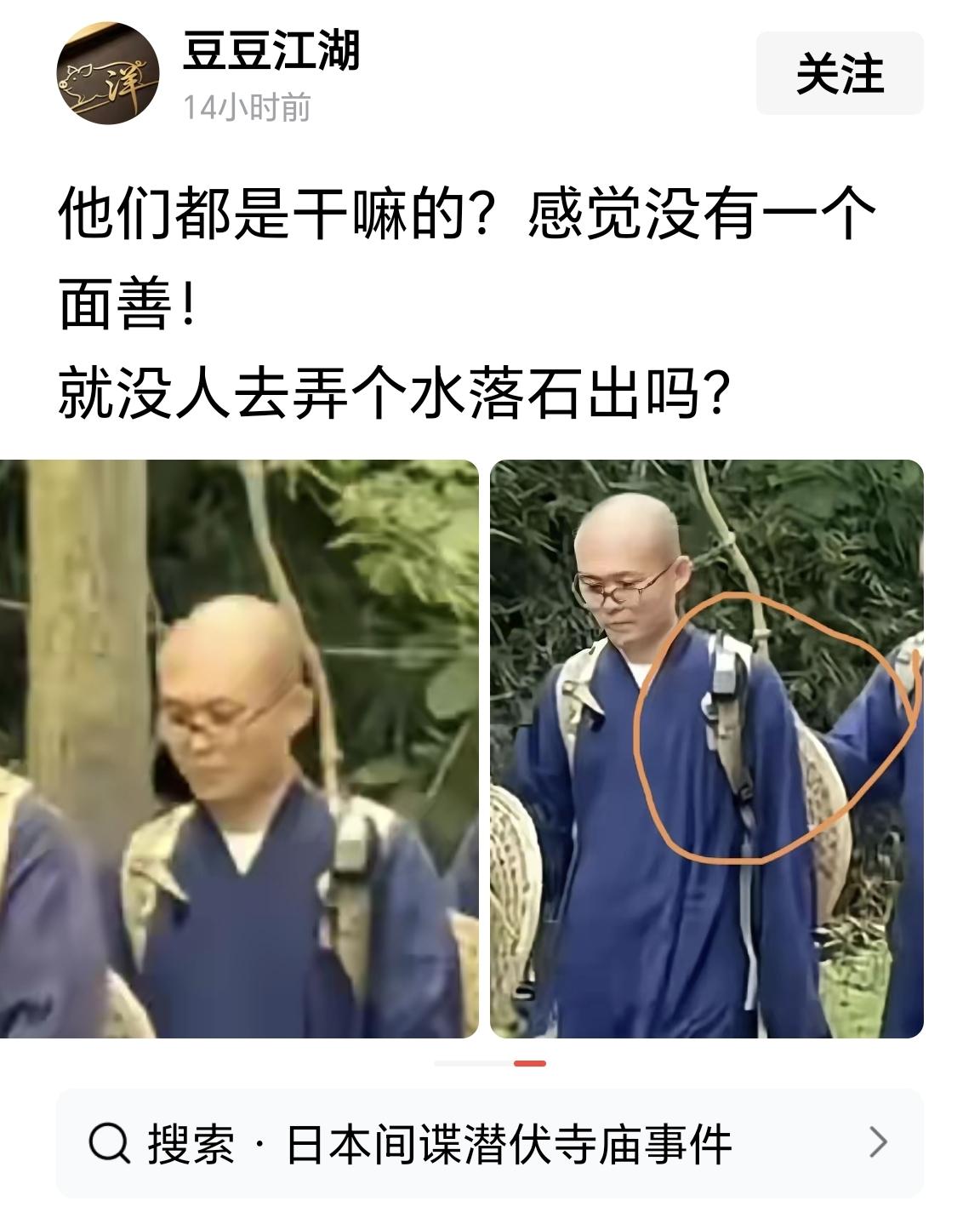 - 网友质疑:评论区里,“易容的军事小组”“戴面具的假和尚”“日本间谍”等猜测刷屏,更有网友直接点出历史教训:“倭寇曾经利用他们的僧侣在中国行间谍之事”,绝非空穴来风。