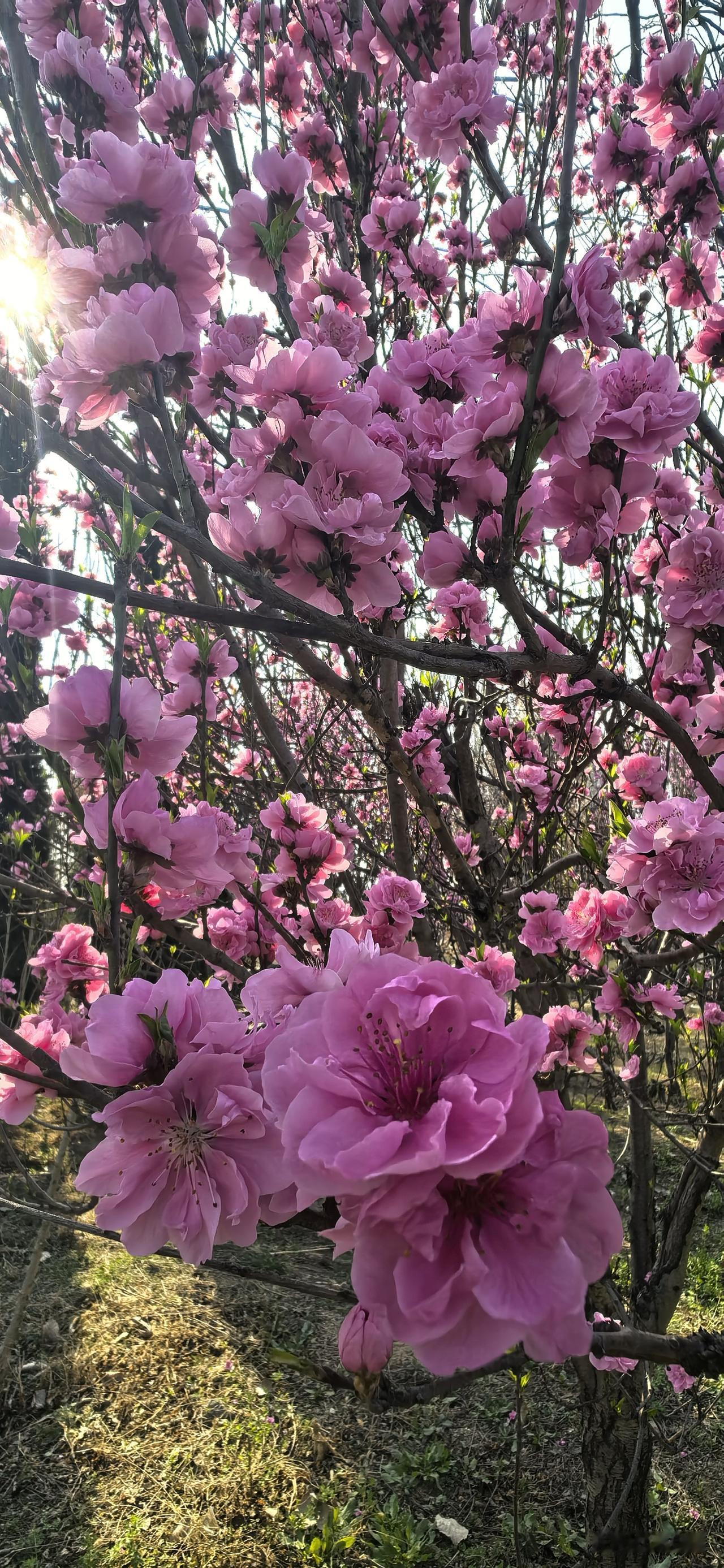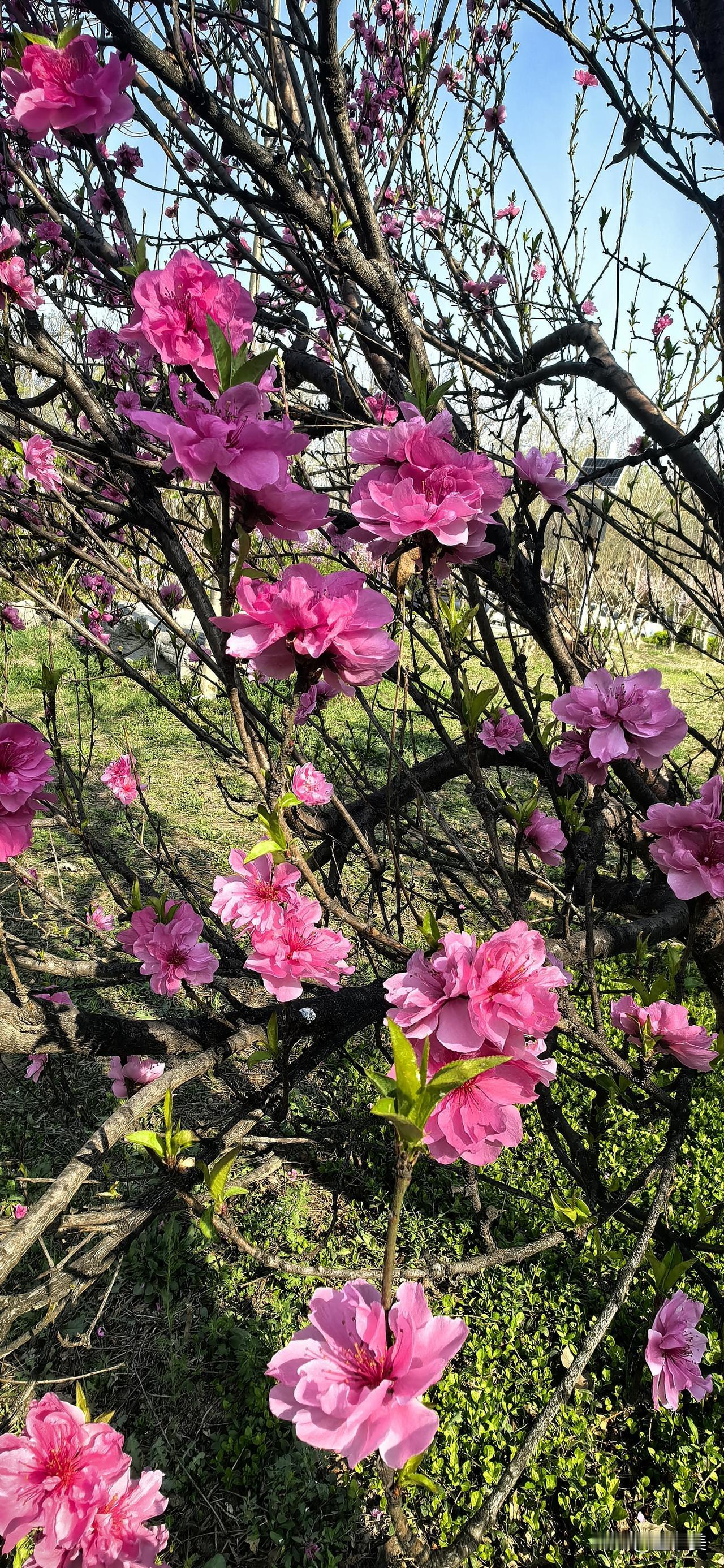 鹧鸪天·碧桃树下 重瓣胭脂压满枝,红潮翻浪惹情痴。 明知鬓角添霜色,偏趁春光