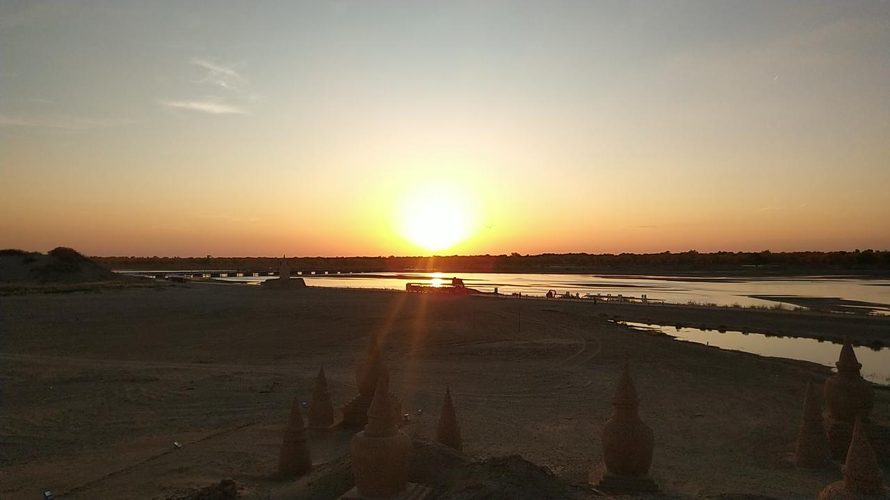 分享一张夕阳下的照片傍晚时分,夕阳西沉,弱水缓缓流淌,晚霞映红了西边天际,一轮圆