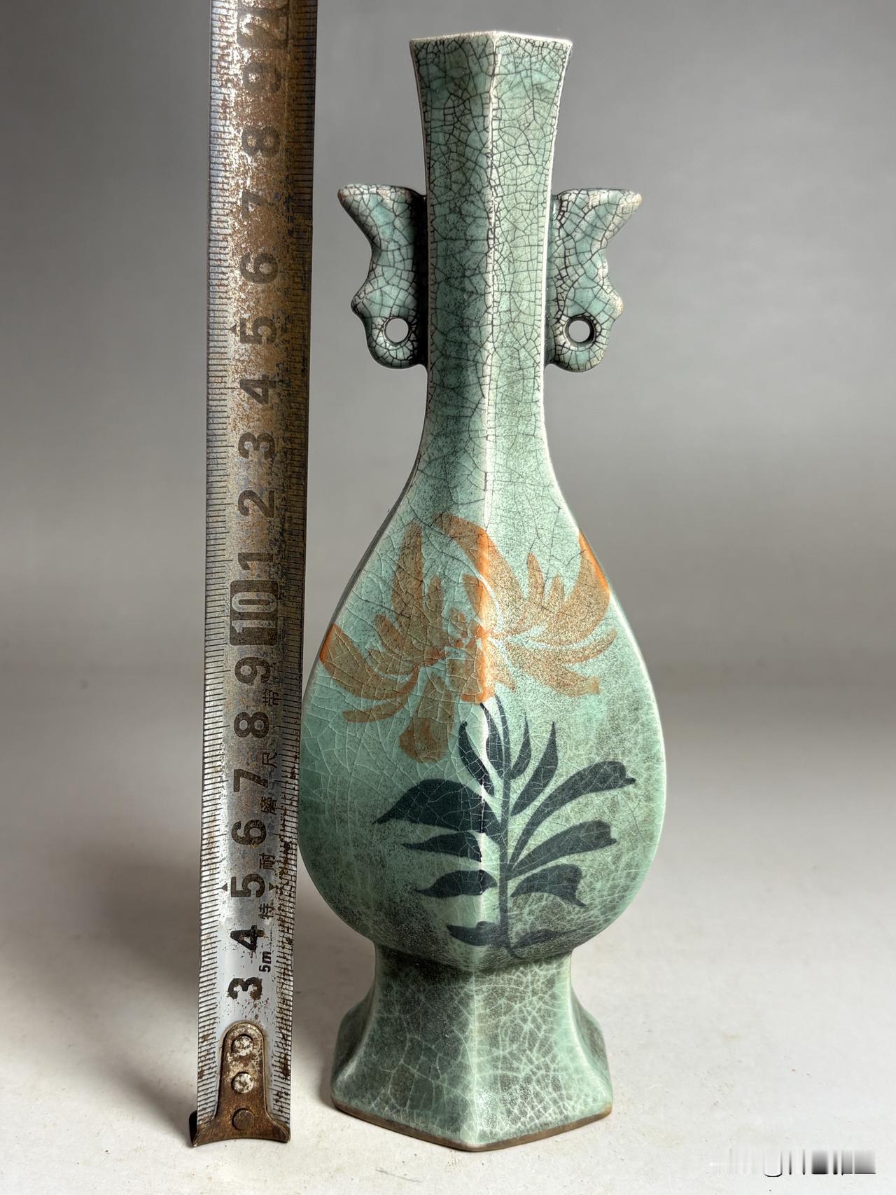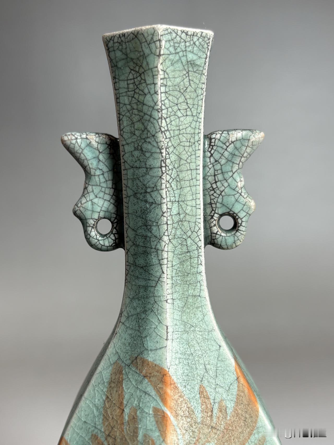 《柴窑名窑图鉴》第四辑:青釉开片六方花鸟双耳瓶:宋韵风华,瓷中逸趣