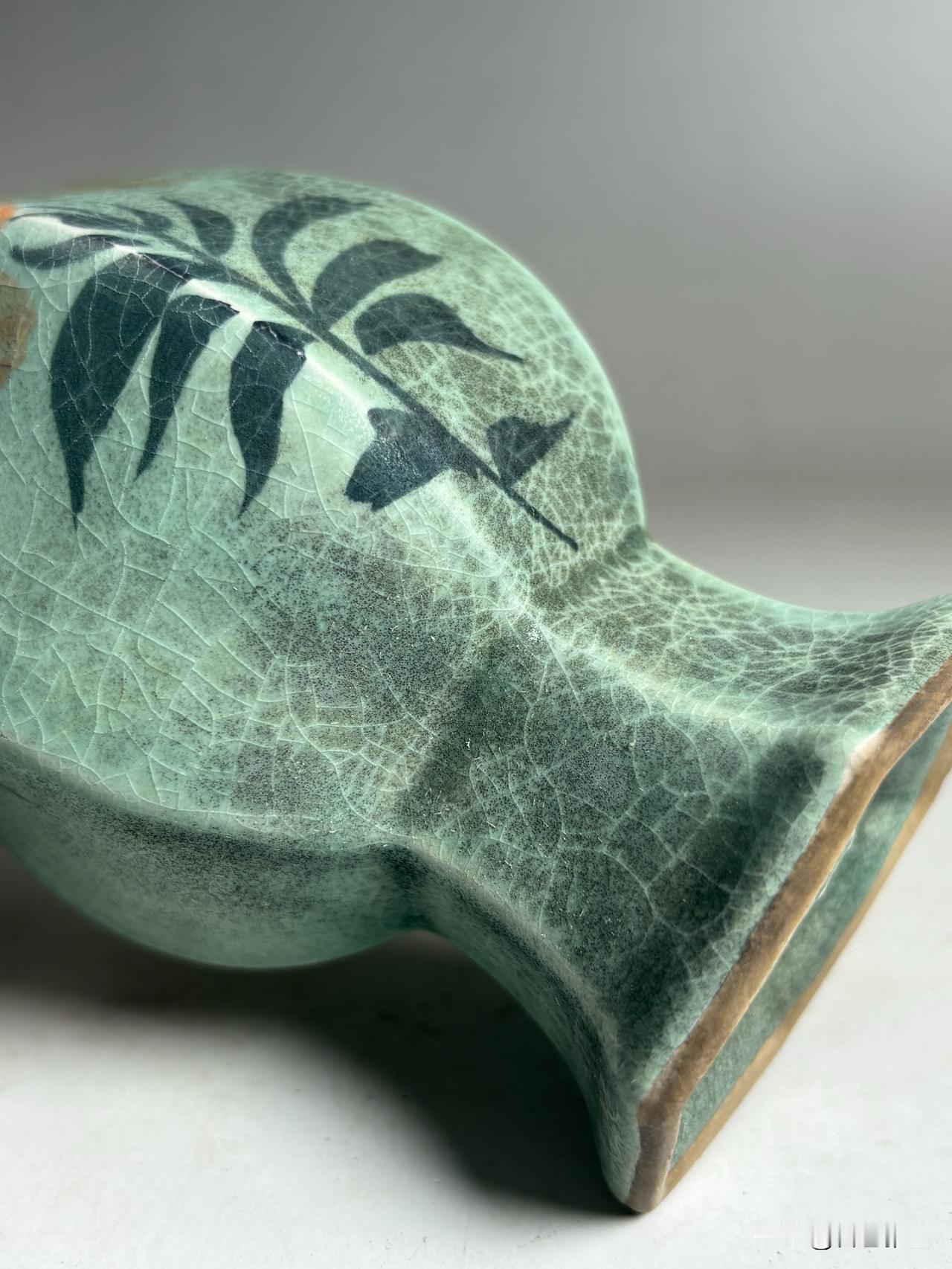 底款篆印古朴,更添古意,瓶底中心凸起“柴”字款,笔法凝练,尽显官窑规制。整器将青瓷的温润、开片的沧桑、彩绘的鲜活融为一体,是宋瓷审美中“格物致知、天人合一”的绝佳写照,于一器之间,尽览宋时文人的清雅风骨与生活意趣。