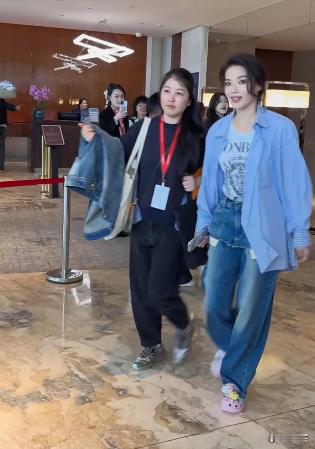 4月16日,是舒淇的49岁生日,她现身北影节,蓝色衬衫搭配牛仔裤,脚踩粉色的洞洞鞋,好年轻又好随意、潮流的穿搭。