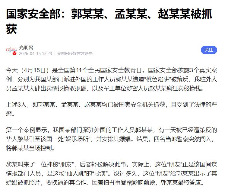 说到底,郭某某的悲剧,是贪念与恐惧战胜理智的必然结果。美人计不可怕,可怕的是内心的贪欲与软弱。国家安全无小事,任何一点松懈,都可能给国家带来灭顶之灾。这不仅是对个人的警示,更是对所有手握公权、接触秘密的公职人员的深刻教育:在间谍的围猎面前,唯有洁身自好、忠诚坚定,才能百毒不侵。