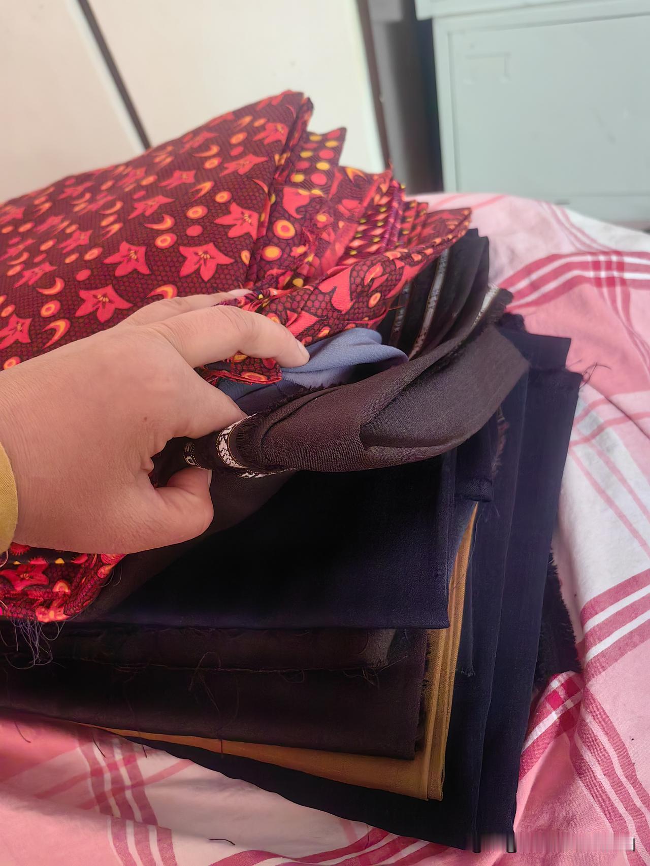 往每个包袱里塞两粒樟脑丸防虫咬,打开其中一个包袱看到了做满月时亲戚们给的布,心想这布能做啥啊,以前孩子小时还用碎花布给孩子做棉袄棉裤,这现在都没人穿布做的了,还有这索索布,以前都用索索布做裤子,现在谁穿这呢,所以这些布留着只能压箱子了,到老了再打开看吧。