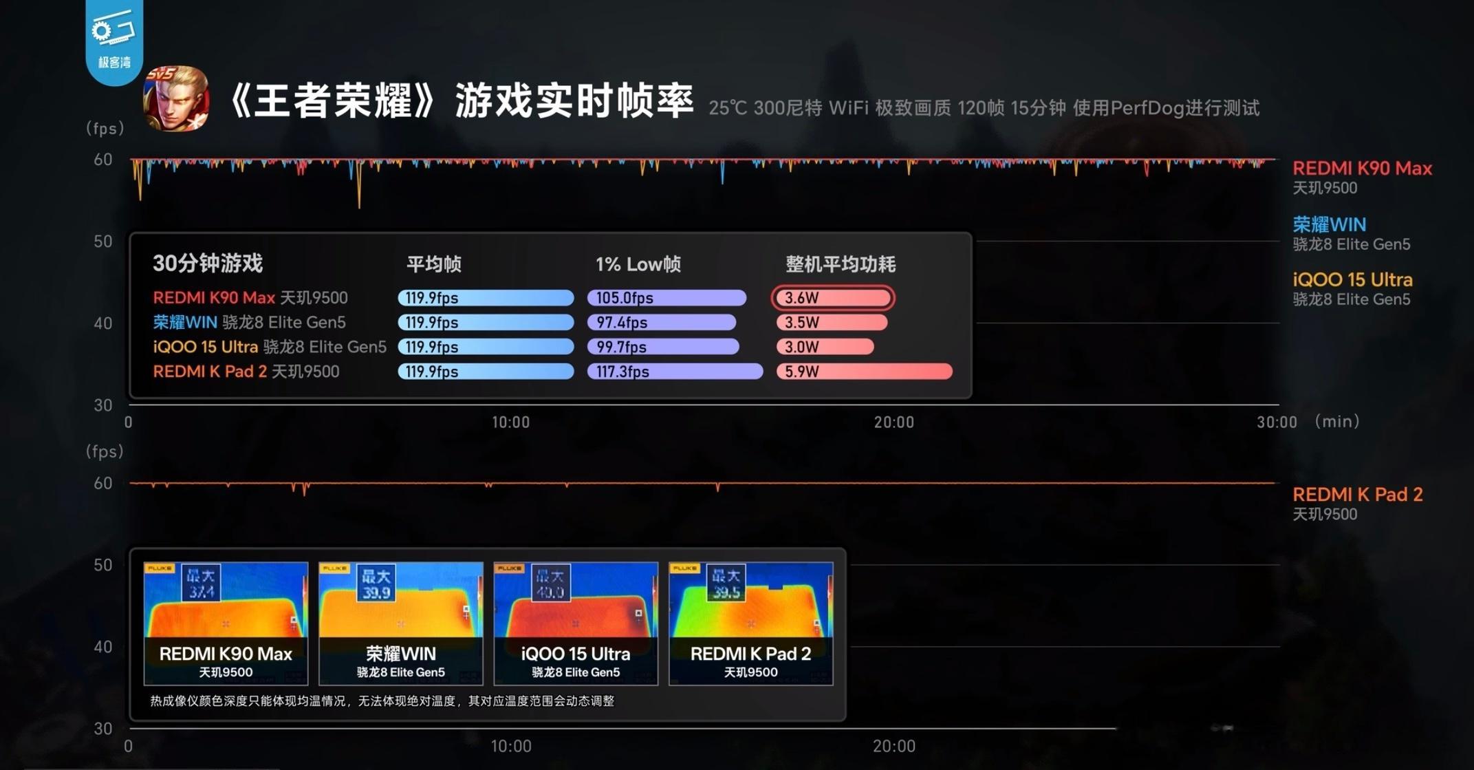 K90 Max,就是那个带风扇的版本实测数据出来了,同游戏下风扇把天玑带飞天了。