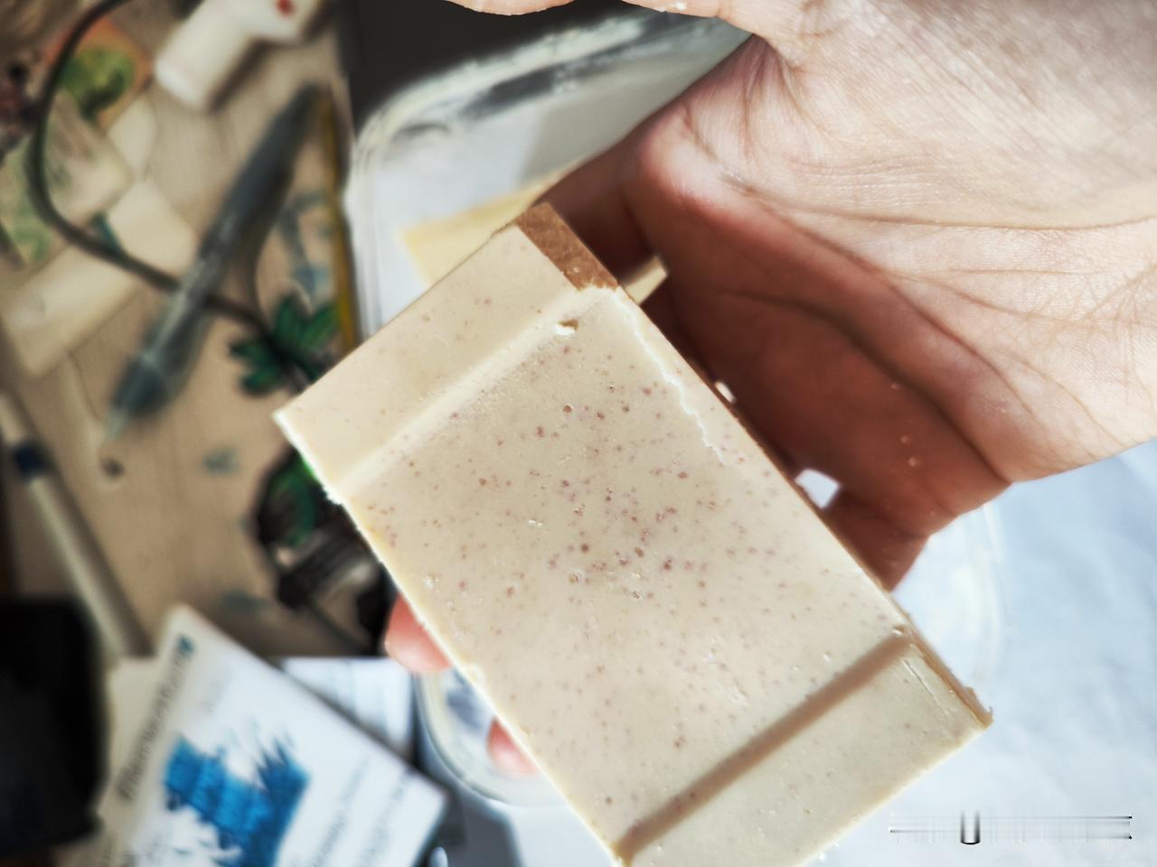 家里有一块放的比较久的猪肥膘,我拿来炼成了猪油,因为放的比较久,肯定是不能吃了,灵机一动,上网一查,来做肥皂!其实过程极为简单,有兴趣的朋友可以上网查,只需要炼好的猪油加上火碱,再加上自己喜欢的味道,需要按比例加,中间全程小心一点,不要灼伤到皮肤就好!按顺序加就没有什么危险!我中间加的是香草精油!反正你就加自己喜欢的精油吧,等上48~72个小时就可以像我这样切块儿,然后再晾干!晾干的时间大概是3~4周,也就是一个月!今天刚好48个小时,我把它切了,然后就需要等待时间变成真正的肥皂!这么一看,其实肥皂也是挺简单的,关键是不要的猪油也利用上了!用力闻了闻,猪油的味道已经几乎闻不到了,剩下的就是淡淡的肥皂香味,跟买的肥皂相差无几!稍微用了一点点,想看一下效果,去污能力还行,估计等一个月后就成型更干燥,那时候用起来应该更爽!家里有不需要的猪油都做起来吧,真的挺简单的,又解锁了一门新技能呐!